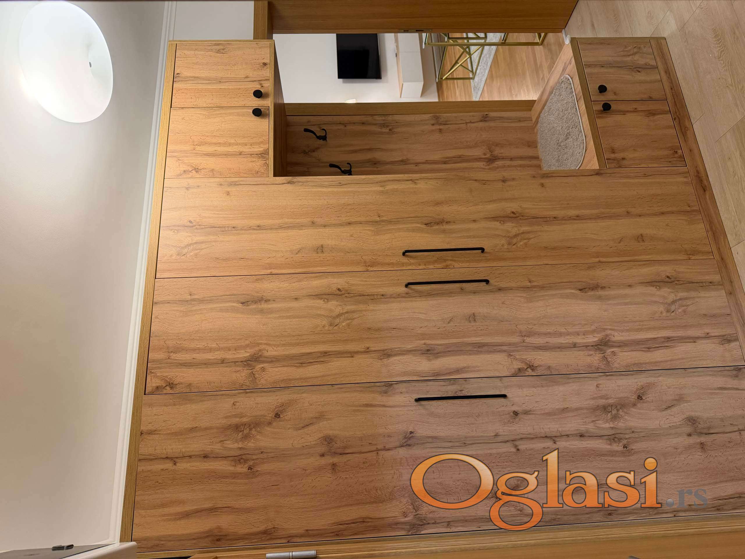 U hodniku se nalazi veliki plakar za odlaganje garderobe i obuce. Iz hodnika se ulazi u sve prostorije stana.