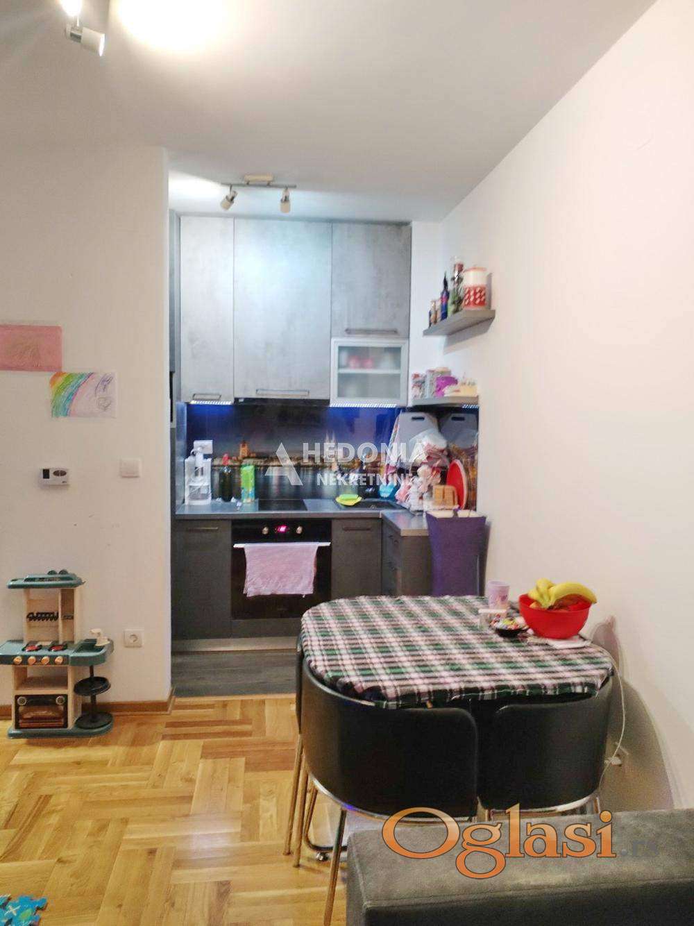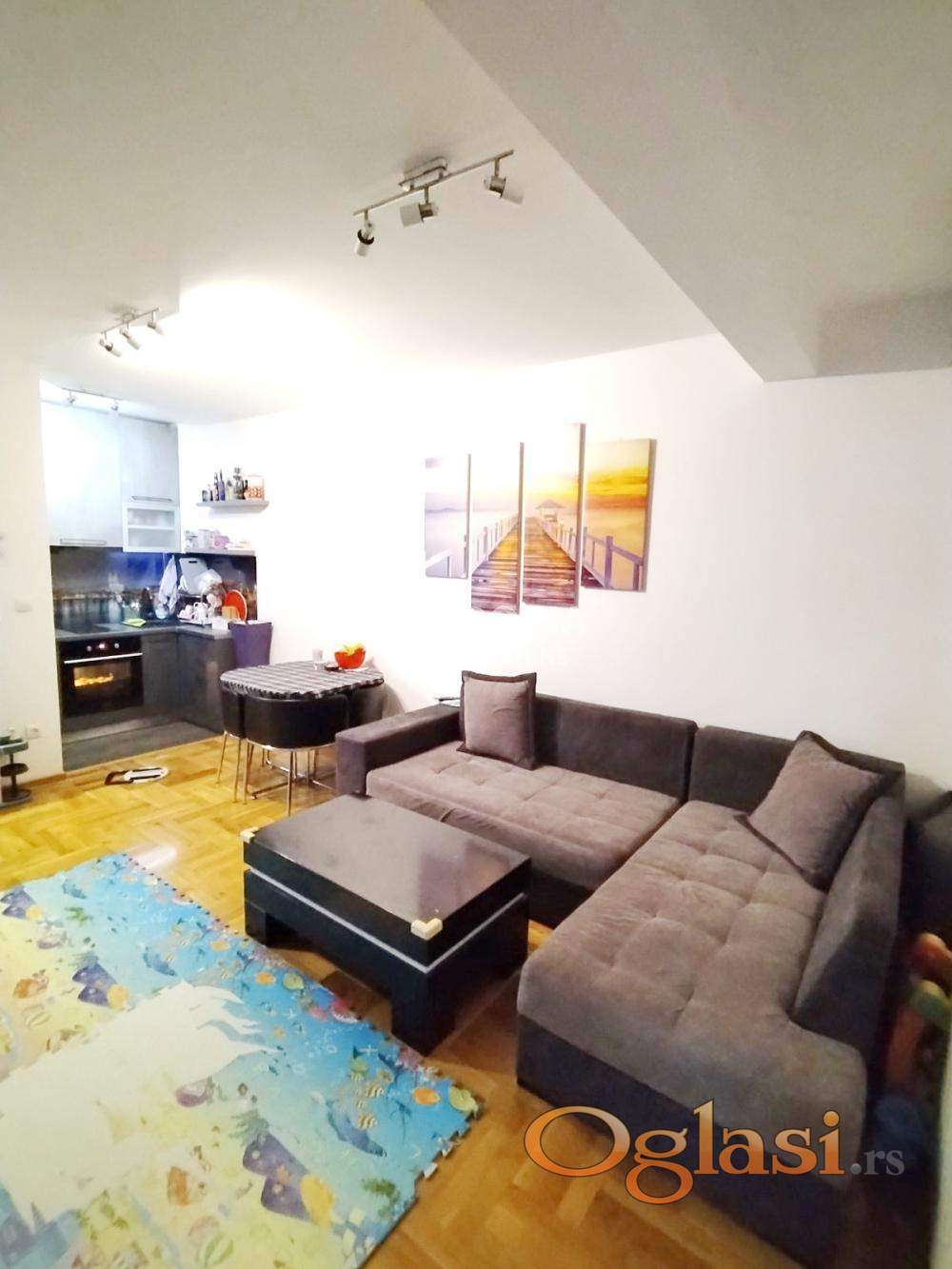 Dvadeset minuta od strogog centra grada, u Mirijevu, nalazi se ovaj prelep, noviji jednoiposoban stan. Infrastruktura je kompletna, u blizini se nalazi škola, vrtić, pijaca, marketi kao i svi ostali neophodni sadržaji za ugodan i lagodan život. Saobraćajna povezanost sa ostalim delovima grada je odlična. Zgrada je uredna i održavana sa liftom i nalazi u ulici sa dosta zelenila. Sastoji se od hodnika iz kojeg se ulazi u sve prostorije, kupatila, spavaće sobe, velikog dnevnog boravka sa izlazom na zastakljenu lođu i kuhinje. Stan se prodaje kompletno namešten. Parking u dvorištu zgrade, samo za stanare.