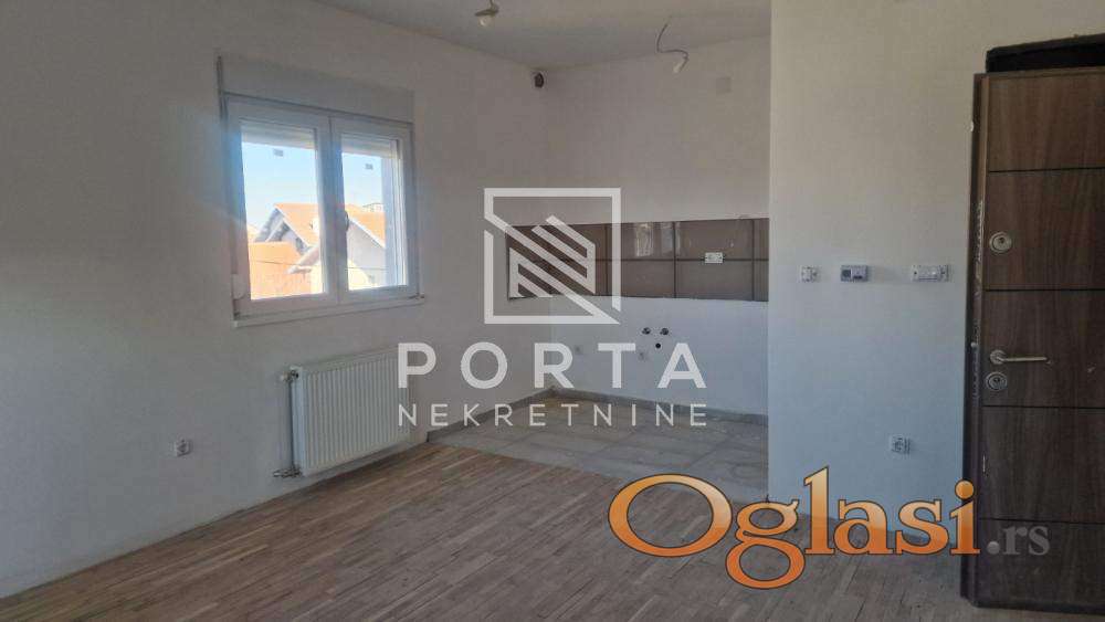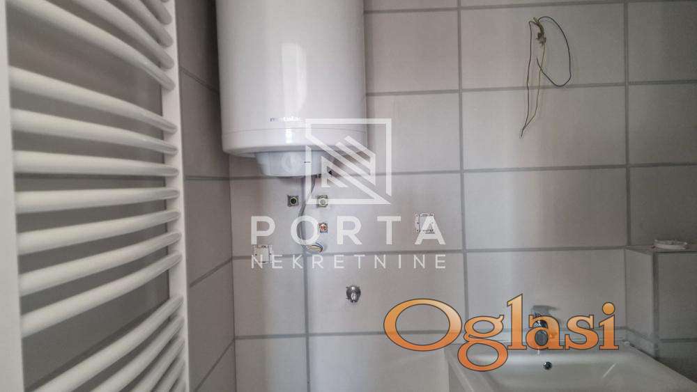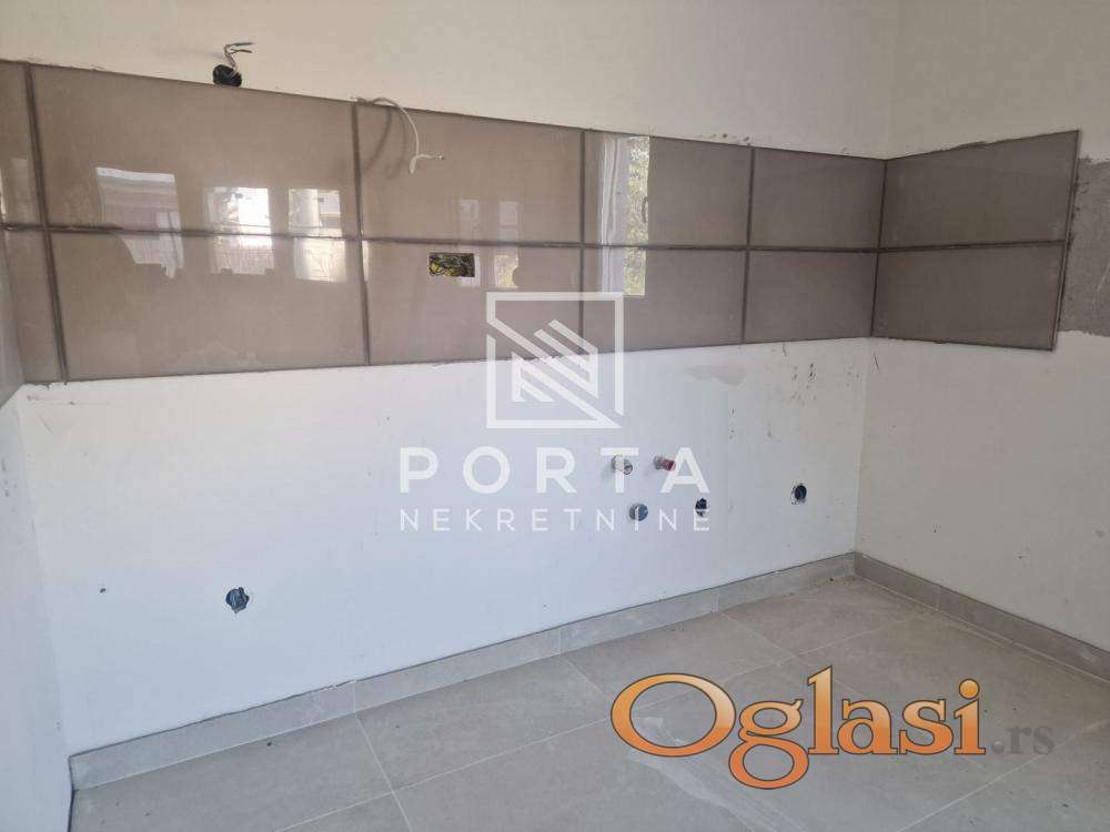 Sastoji se iz ulaza,dnevno trpezarijskog dela i kuhinje,spavaće sobe, kupatila i velike ograđene terase od 19 m2.Grejanje je etažno.Mogućnost kupovine parking mesta ispred zgrade po ceni od 6000 eur.