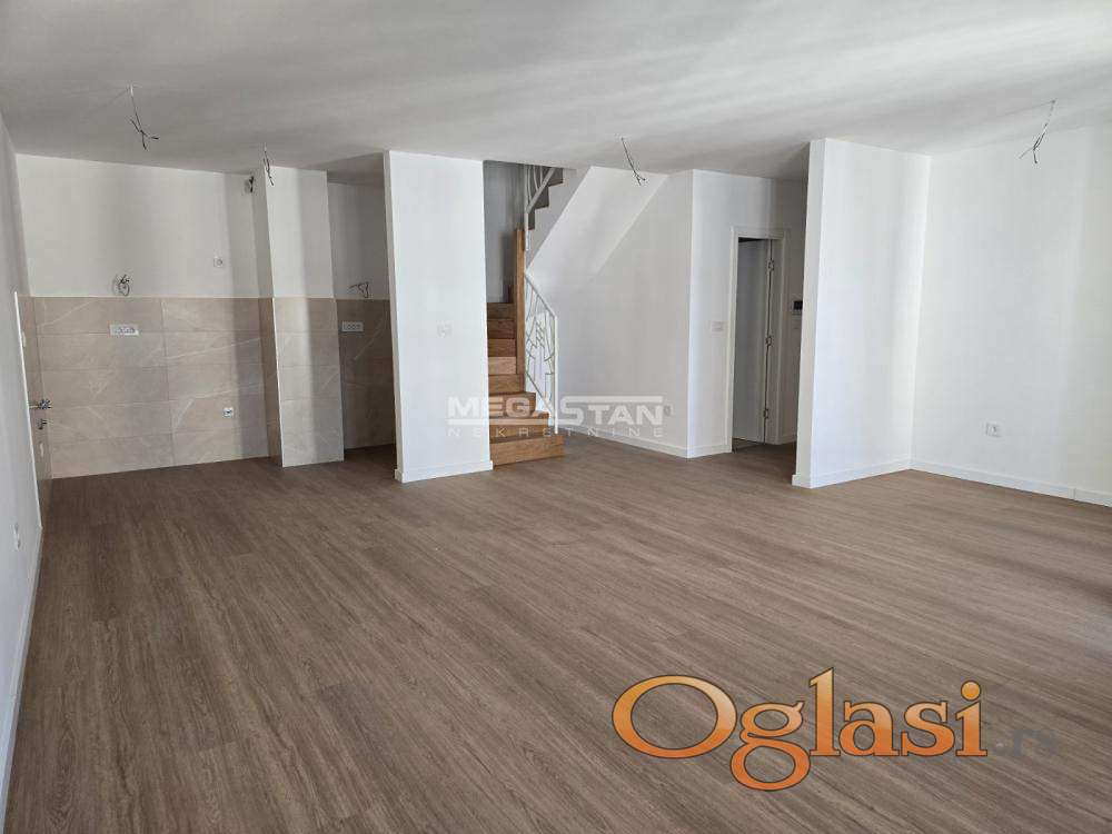 U gornjem nivou se nalaze 3 spavaće sobe, 2 kupatila sa tuš-kabinom i prostrana terasa, na koju se direktno izlazi iz svake od soba. U master spavaćoj sobi predviđeno je mesto za garderober.