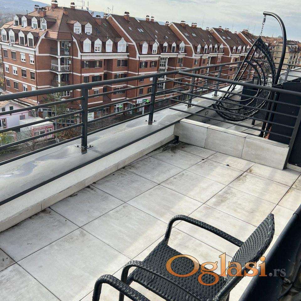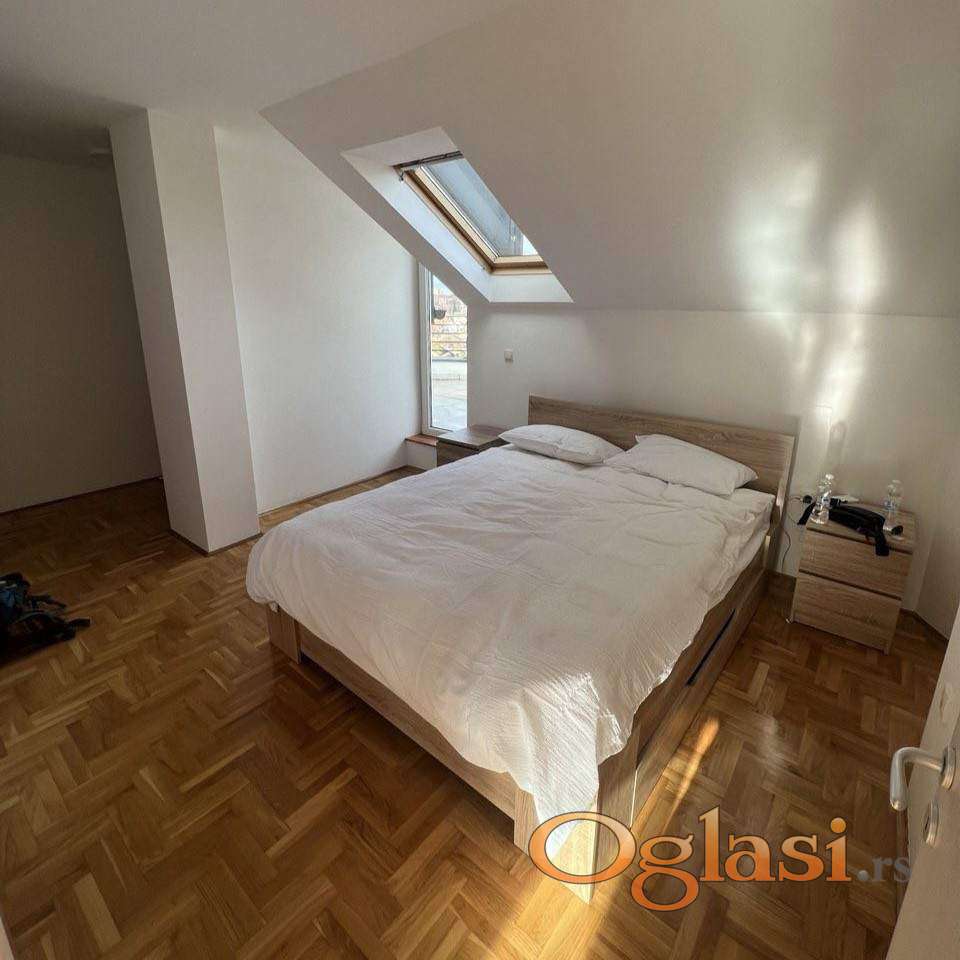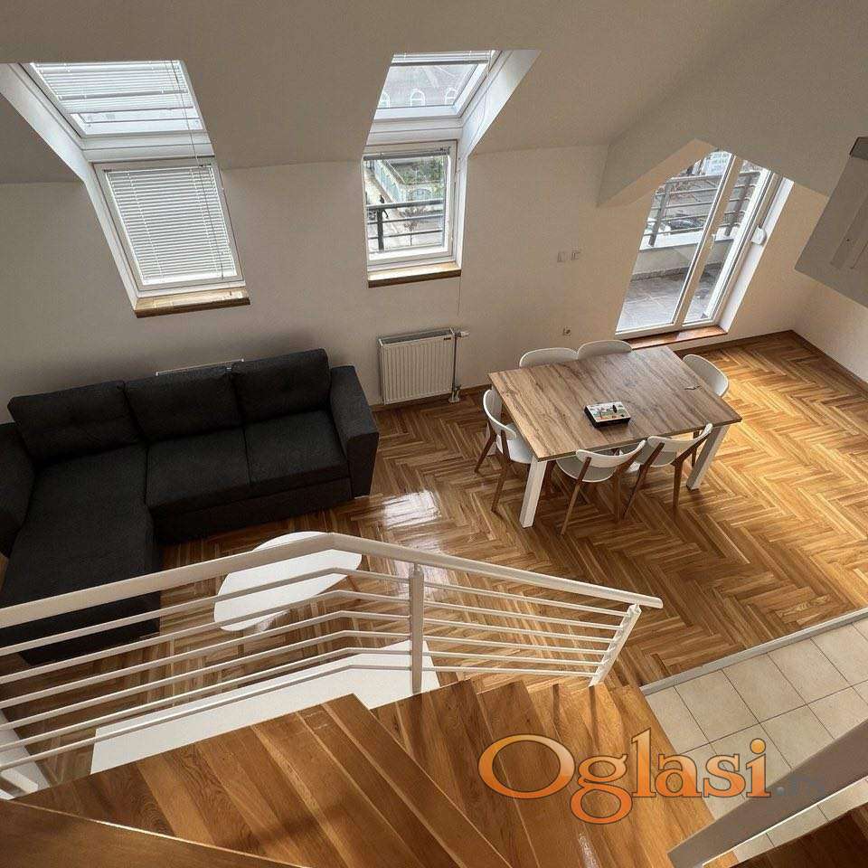 Izdaje se prelep duplex na Bulevaru patrijarha Pavla. Za ljude koji traže spoj mirnog života i prednosti grada. Na donjem nivou stana su dnevna soba sa trpezarijom, odvojena kuhinja, WC. Na gornjem spratu se nalaze dve spavaće sobe i kupatilo. Duplex je kompletno namešten, ima svu neophodnu belu tehniku i dve klime. Ima tri terase. Useljiv je odmah.Kućni ljubimci su dozvoljeni. Za više informacije pozovite naše agente!