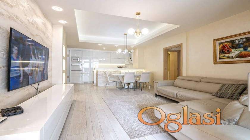 Prostran dnevni boravak s kuhinjom i blagovaonicom, 2 spavaće sobe, 2 kupaonice i terasa.