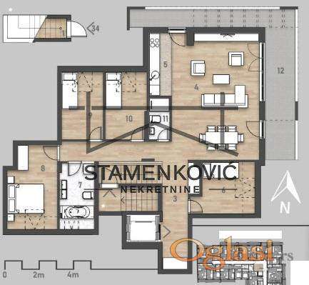 Prodaje se nov, komforan penthouse u novoizgrađenom modernom stambeno-poslovnom objektu. Lokacija: Salajka, između Kisačke i Temerinske ulice, nedaleko od Podbare i centra grada. Ova lokacija je idealna za moderan život sa svim neophodnim sadržajima u blizini. Stan se sastoji od hodnika, kuhinje, velike dnevne sobe sa trpezarijom, 4 spavaće sobe, kupatila, toaleta i terase od 24m2. Grejanje je centralno, na kalorimetre, što omogućava plaćanje po potrošnji. Od opreme izdvajamo hrastov parket, prvoklasnu italijansku i špansku keramiku i sanitarije, sigurnosna vrata i video nadzor. Stan je ulično orijentisan. Postoji mogućnost kupovine garažnog ili parking mesta u suterenu. ************ Ukoliko je ova nekretnina na nekom portalu oglašena sa nižom cenom ,koju je prethodno odobrio vlasnik nekretnine , ta niža cena važi i u našoj ponudi........................STAMENKOVIĆ NEKRETNINE -NOVI SAD , Upisan U Reg. Pos. Broj 1170