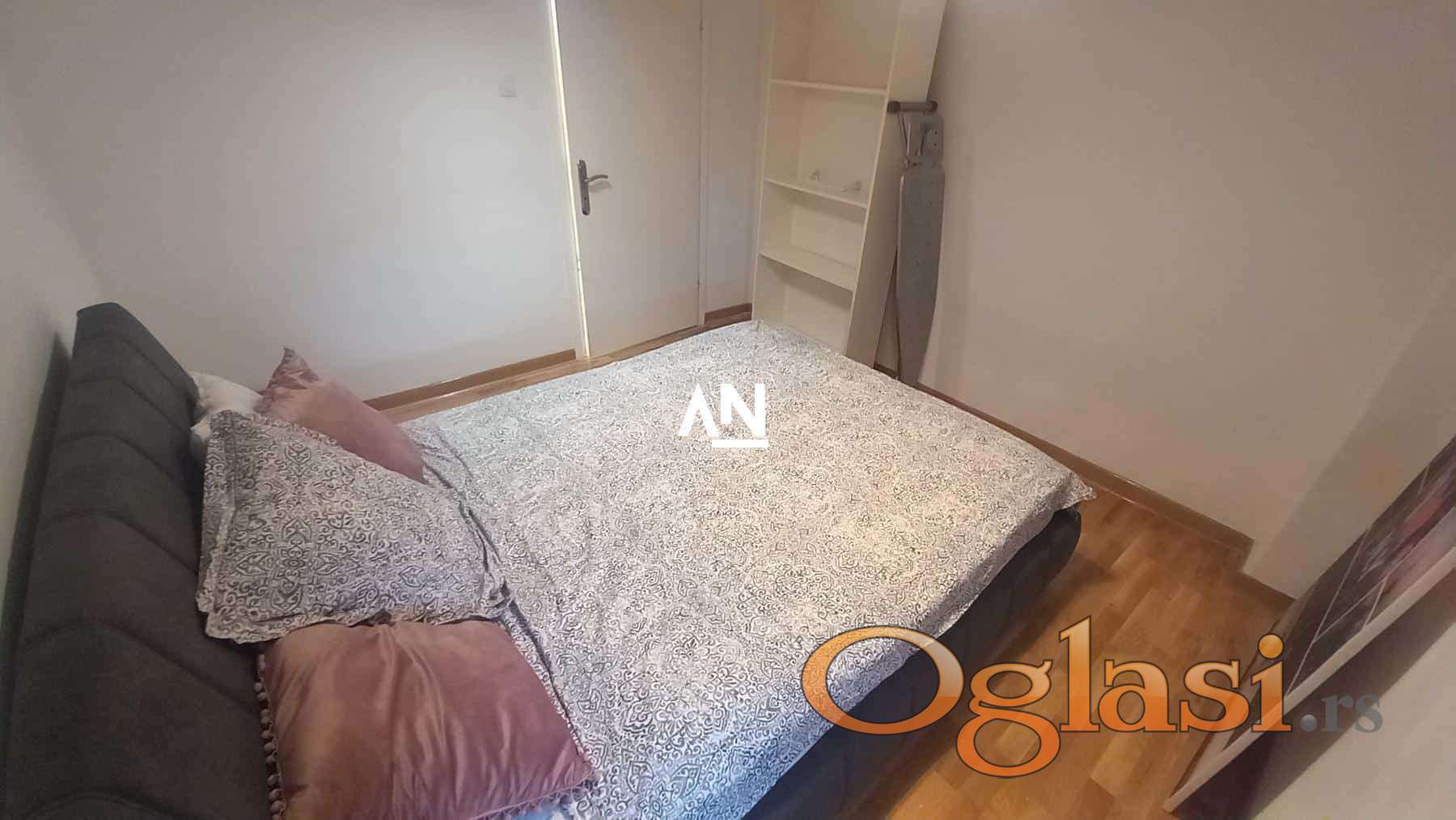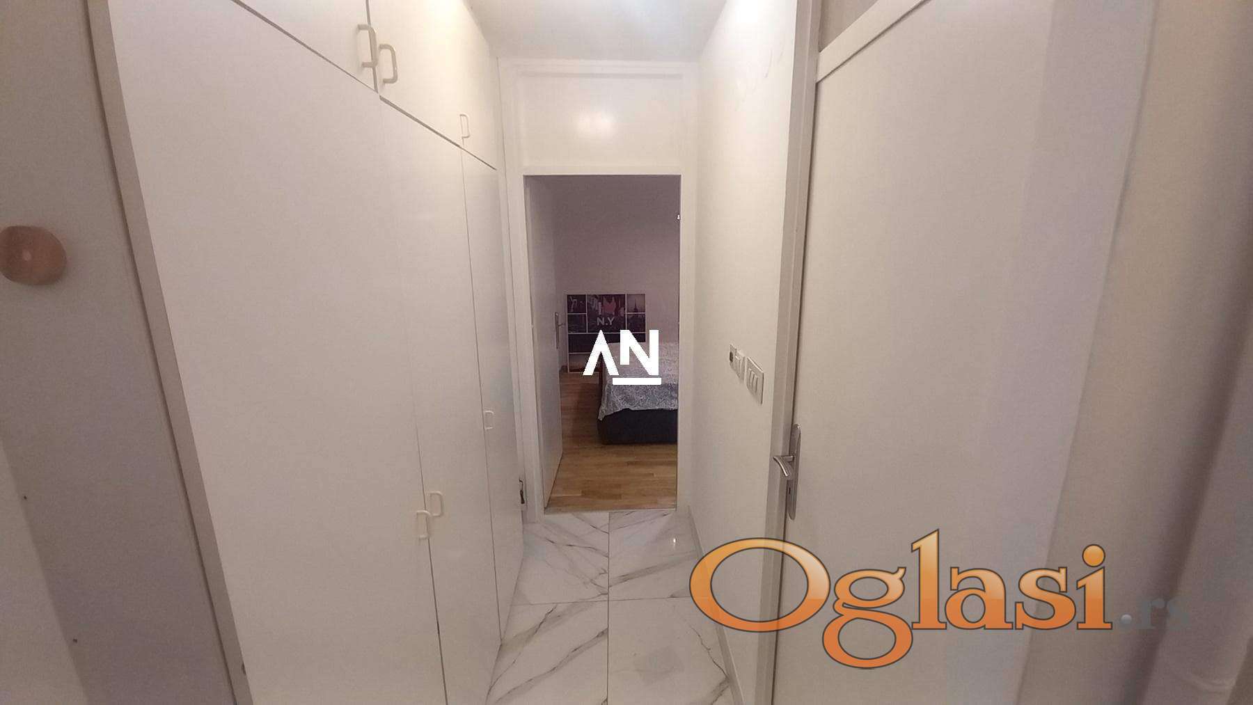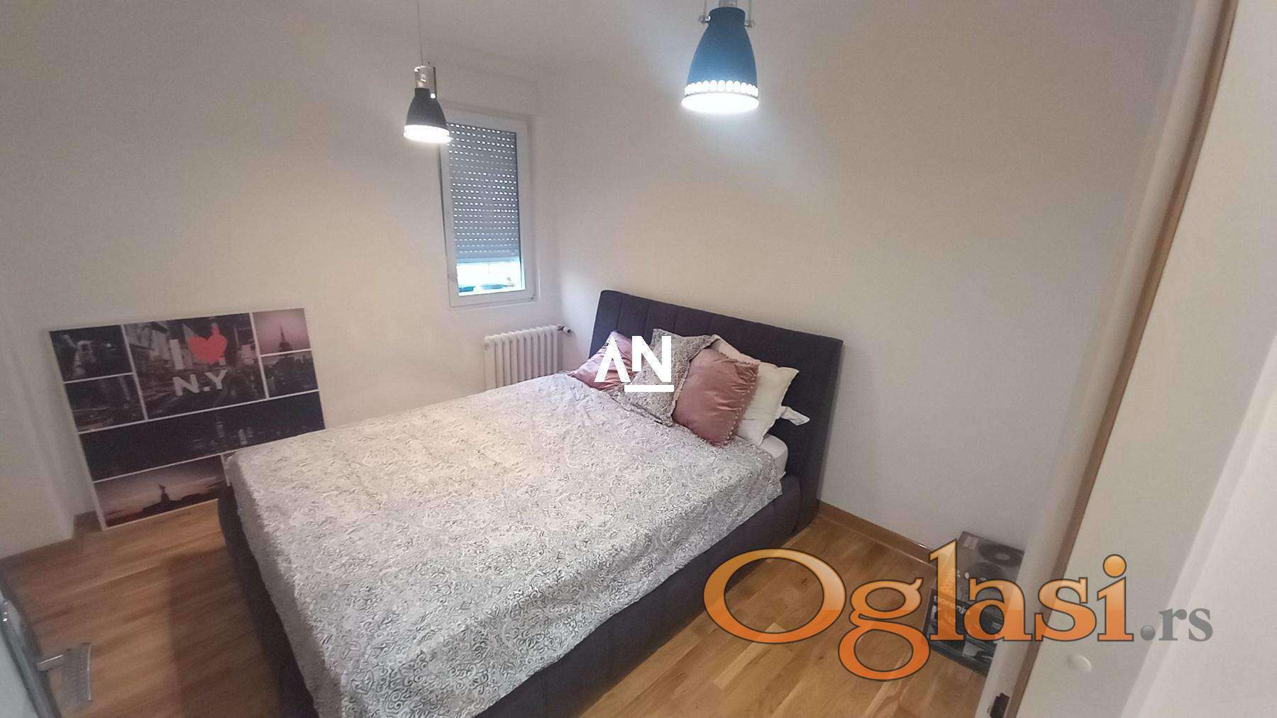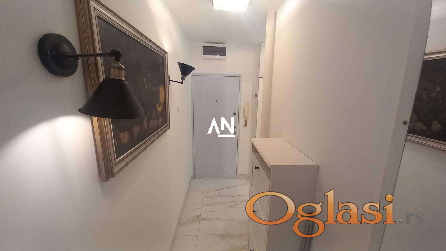 Izdaje se luksuzan dvosoban stan (44 m² + terasa 20 m²) u mirnom delu Bloka 24, u blizini Beogradska Arena i Super Vero.