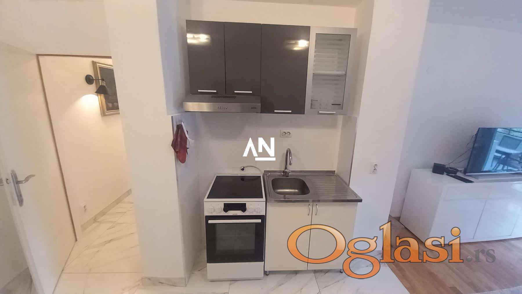 Luxury one-bedroom apartment for rent (44 m² + 20 m² terrace) in a quiet area of Block 24, near Belgrade Arena and Super Vero.