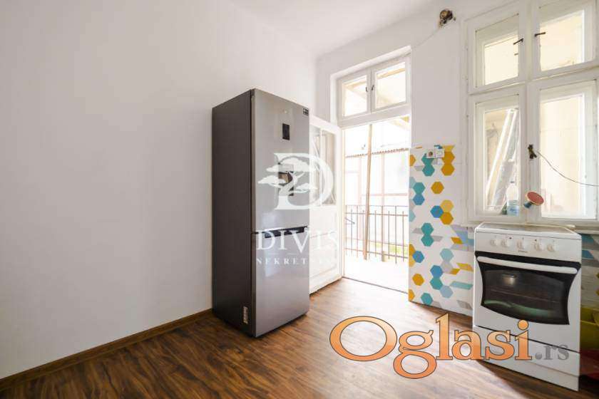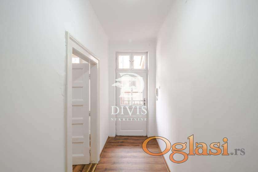 Stan je površine 68 m² i nalazi se na prvom spratu predratne zgrade sa očuvanim autentičnim elementima gradnje. Stan se sastoji od ulaznog hodnika, dve komforne sobe, predsoblja, kuhinje, ostave, kupatila i terase. Nekretnina je funkcionalnog rasporeda i poseduje veliki potencijal za adaptaciju prema potrebama budućih vlasnika.