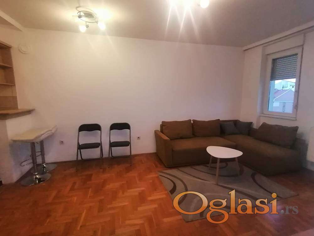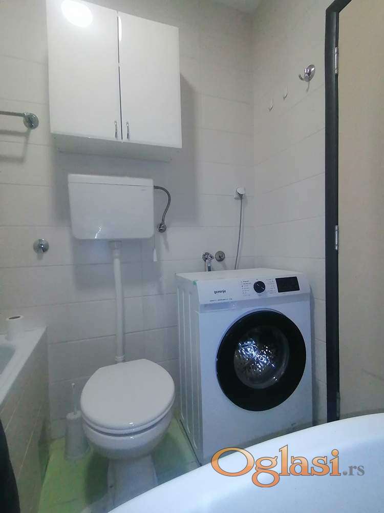 Izdaje se kompletno namešten jednoiposoban noviji stan 38m2. Stan je na 2 spratu zgrade sa liftom na Telepu - Bulevar Patrijarha Pavla. Ima odvojenu spavaću sobu sa bračnim krevetom, u dnevnom boravku jer ugaona garnitura na razvlačenje. Klimatizovano, ima terasu. Centralno gradsko grejanje, informatika oko 9000. Može na cenu 300e ako je ugovor na minimum 1 godinu. Useljivo odmah. Za ozbiljne zakupce na duži period, depozit obavezan u visini zakupa. Nije za strane državljane. Kućni ljubimci nisu dozvoljeni. Kontakt: 063536286.