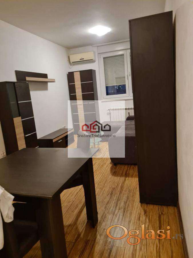 Novi Sad. Adamovićevo naselje Izdaje se nameštena garsonjera. Useljva od 01.04. Grejanje na gas,mali troškovi. Cena 290e+depozit. Agencijska provizija 50% od prve mesečne zakupnine.