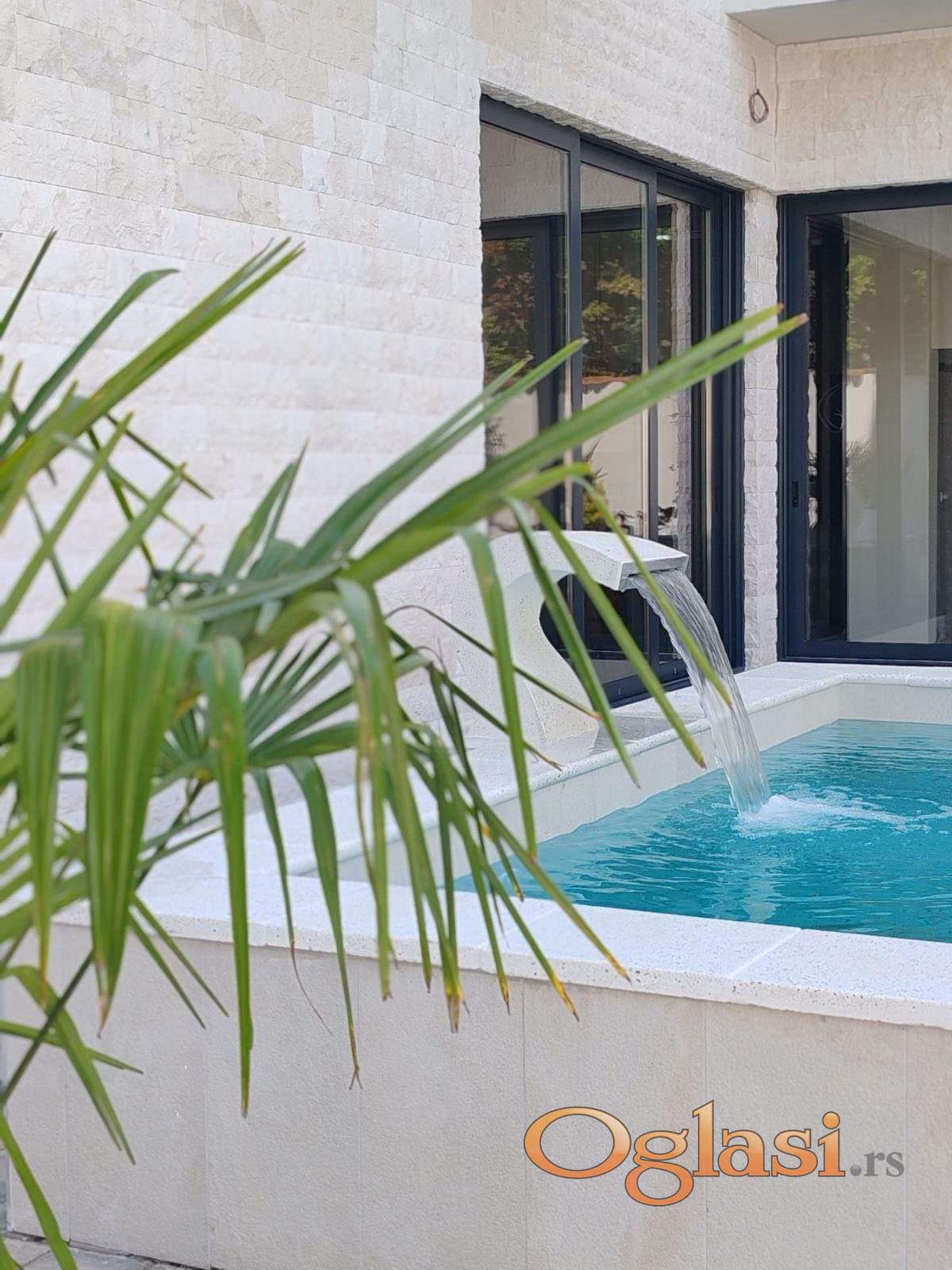 Stan se nalazi na prvom spratu moderne vile sa recepcijom, restoranom, bazenom, spa centrom, teretanom, liftom i velikom krovnom terasom.
