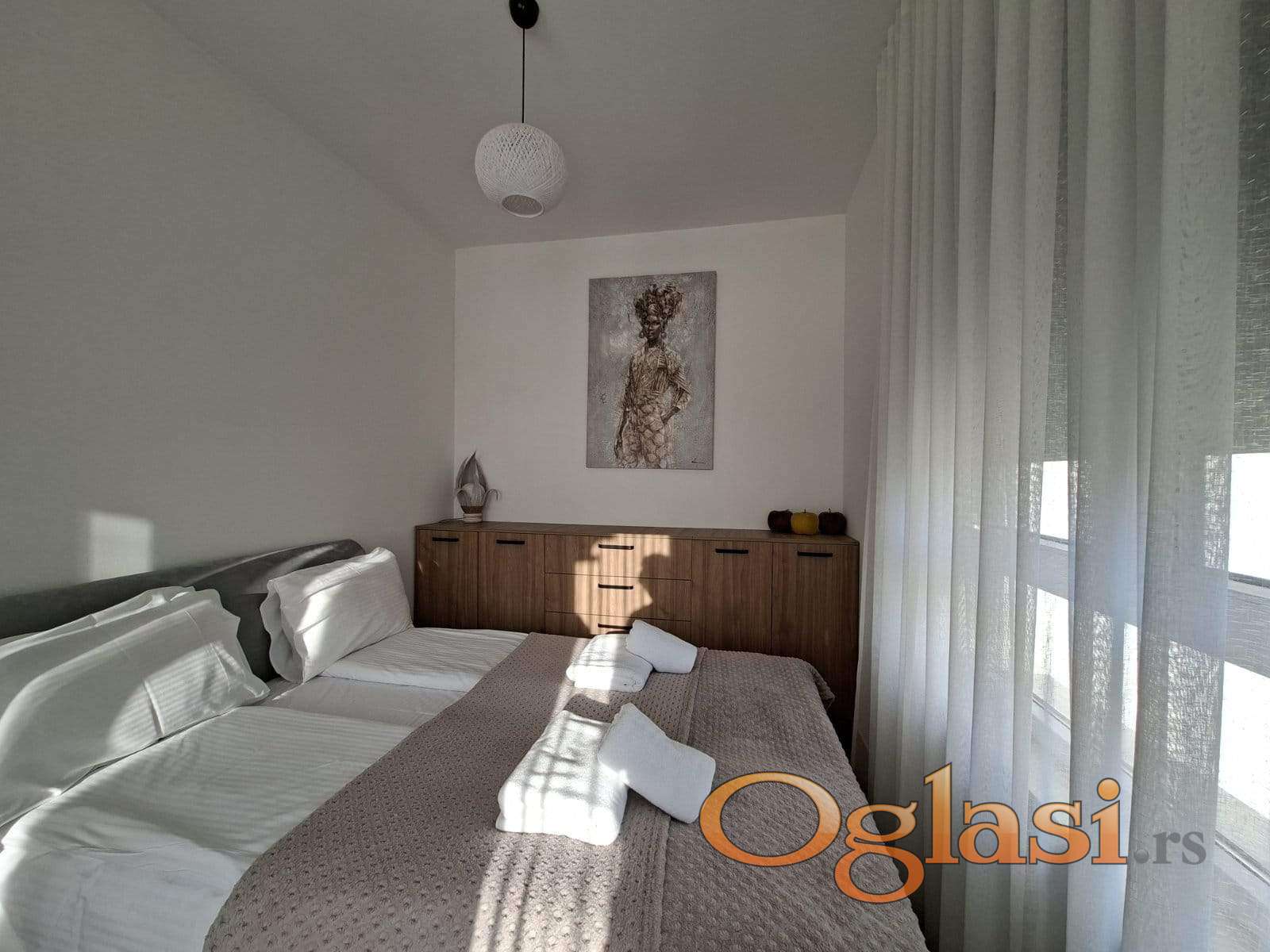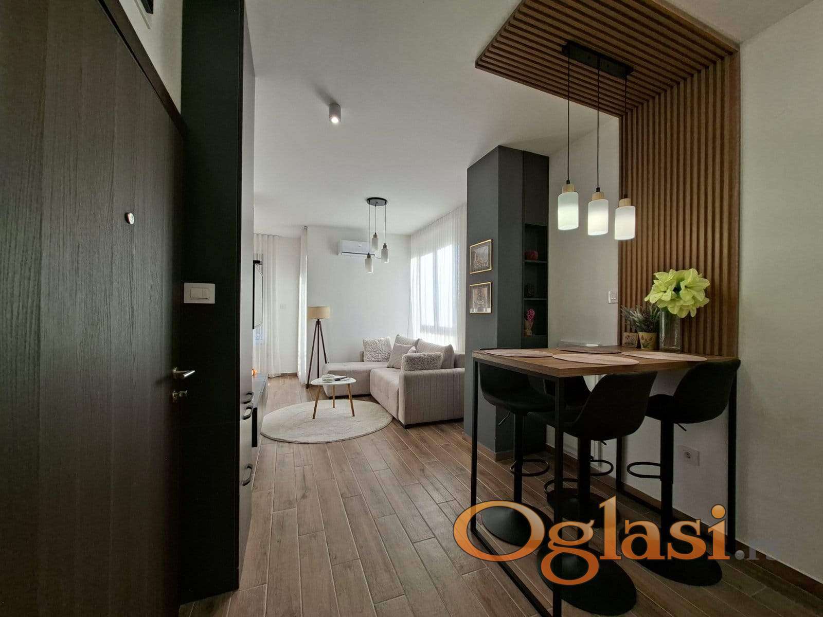 Potpuno je opremljen i moderno namešten, a sastoji se iz dnevne sobe i kuhinje u open-space prostoru, delimično izdvojene spavaće sobe sa velikim bračnim krevetom, prostranog kupatila sa walk-in tuš kabinom veš mašinom i lepe terase.