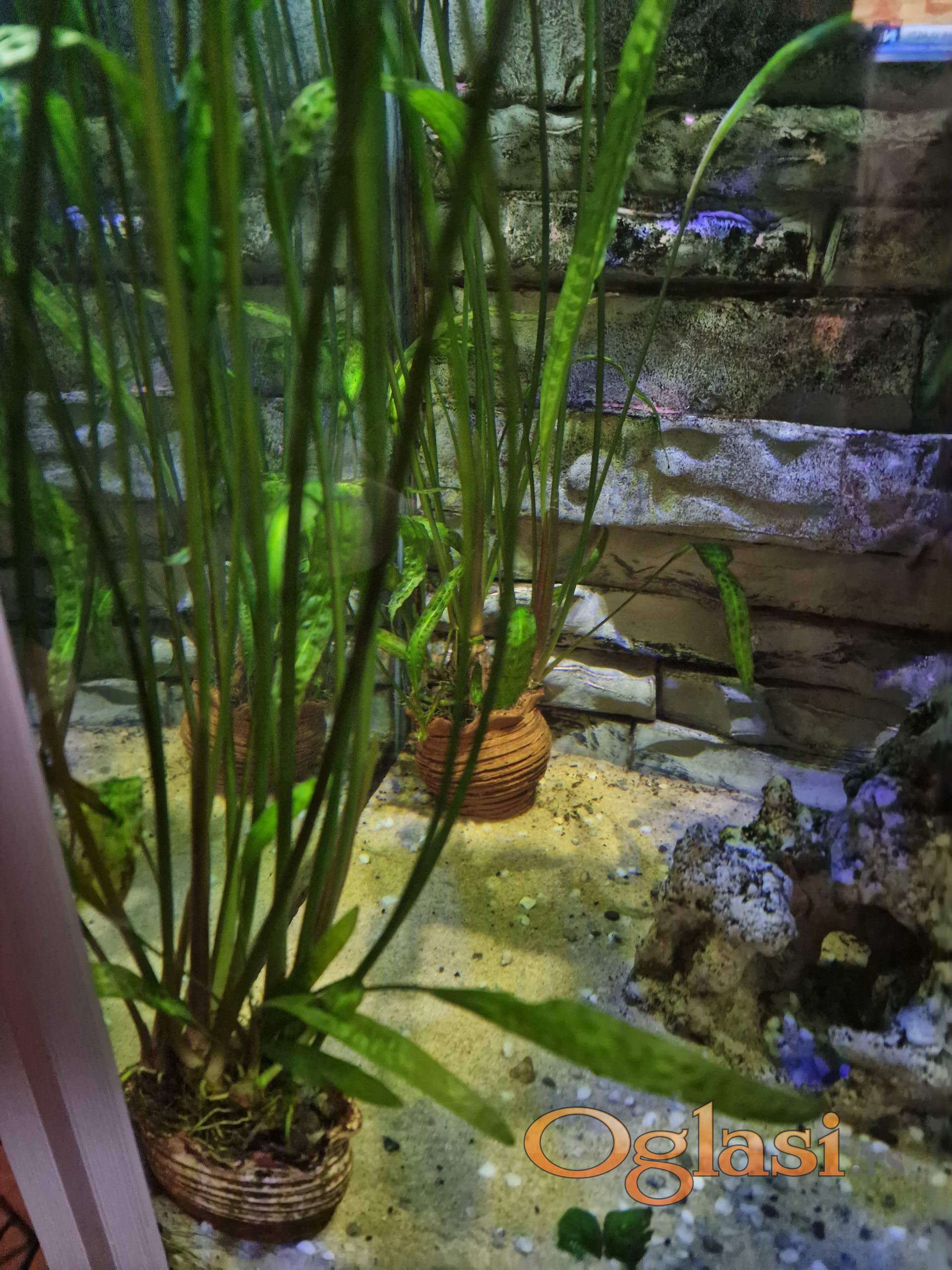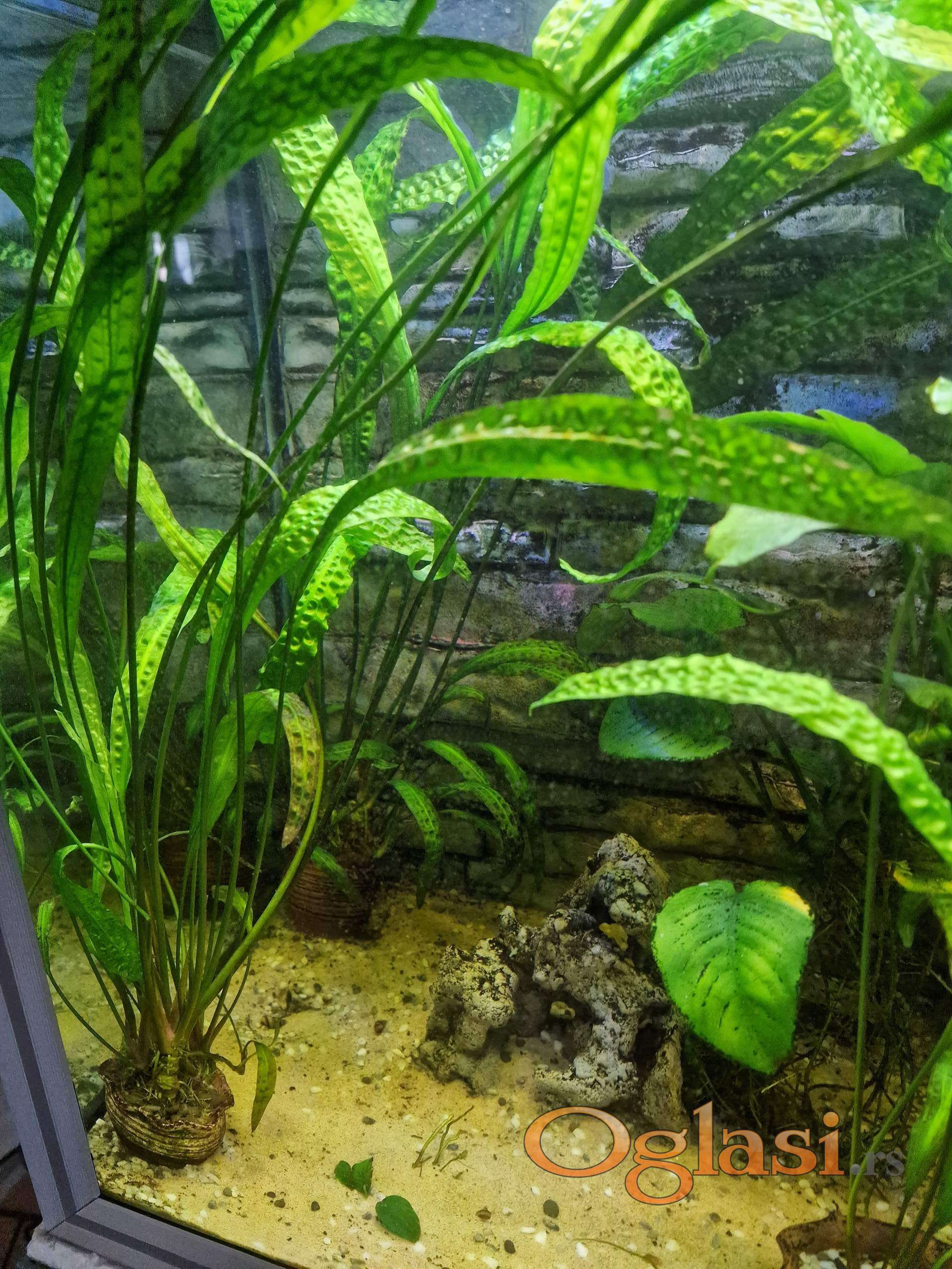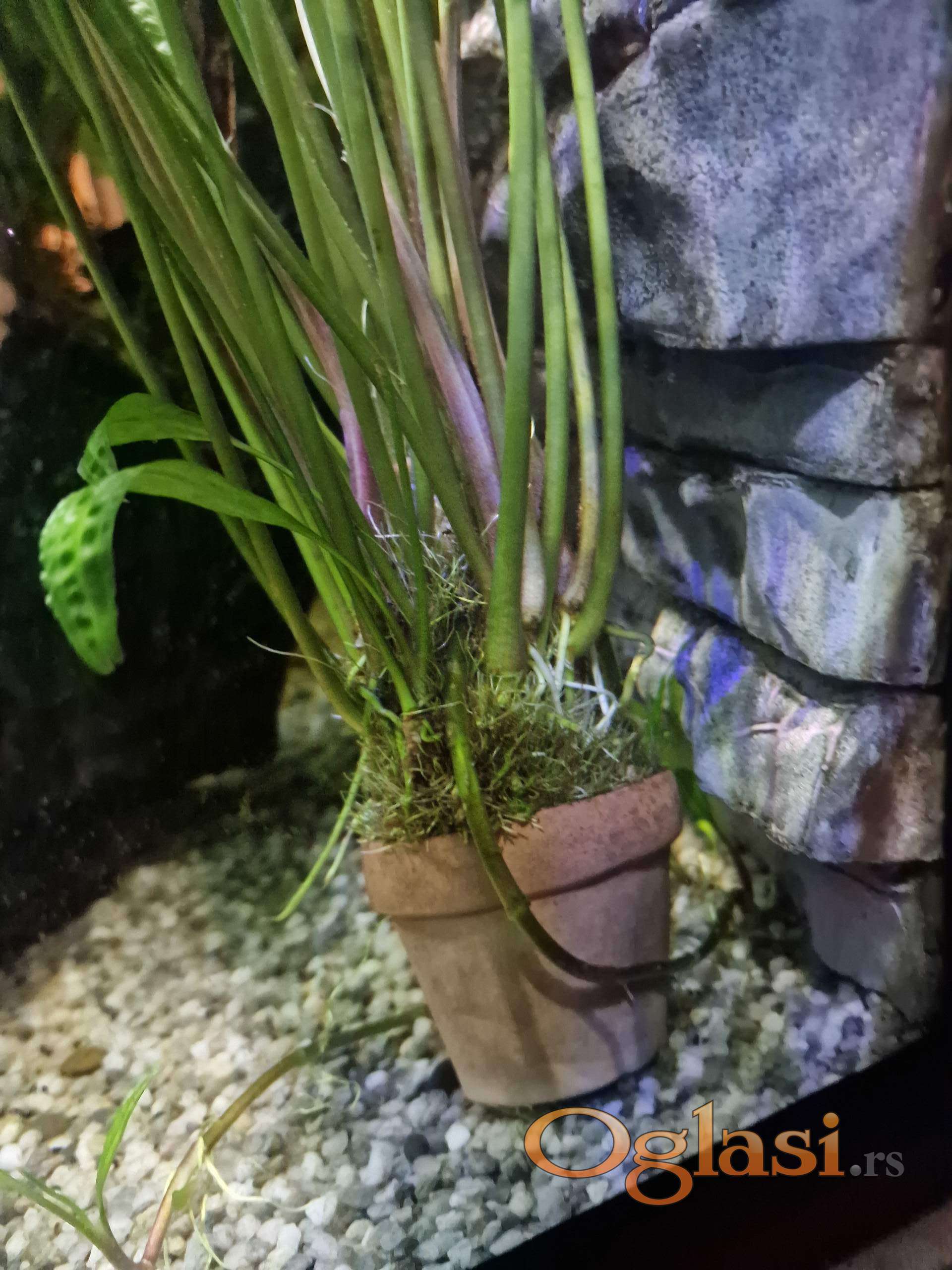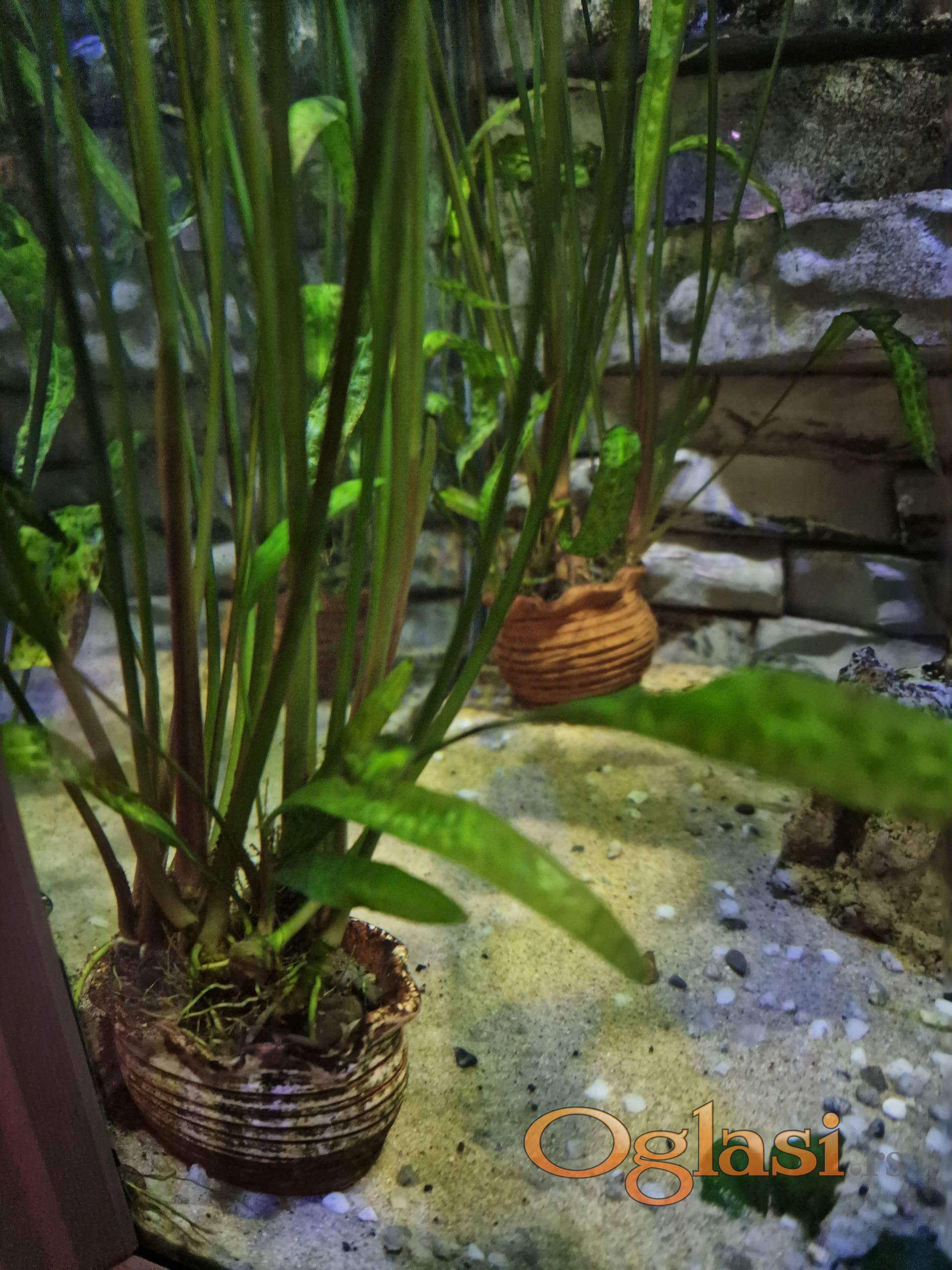 Zbog gašenja većeg akvarijuma prodajem Cryptocoryne aponogetifolia u šest manjih saksija po 10 eur, jedna veća nana anubius 15 eur i jedan panj 25 eur. Na slikama se vidi sve, moze i pojedinačno, dogovor