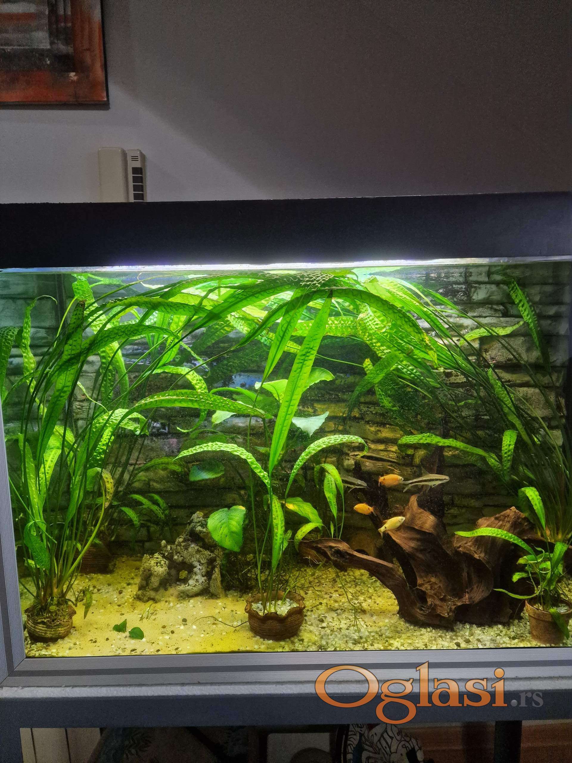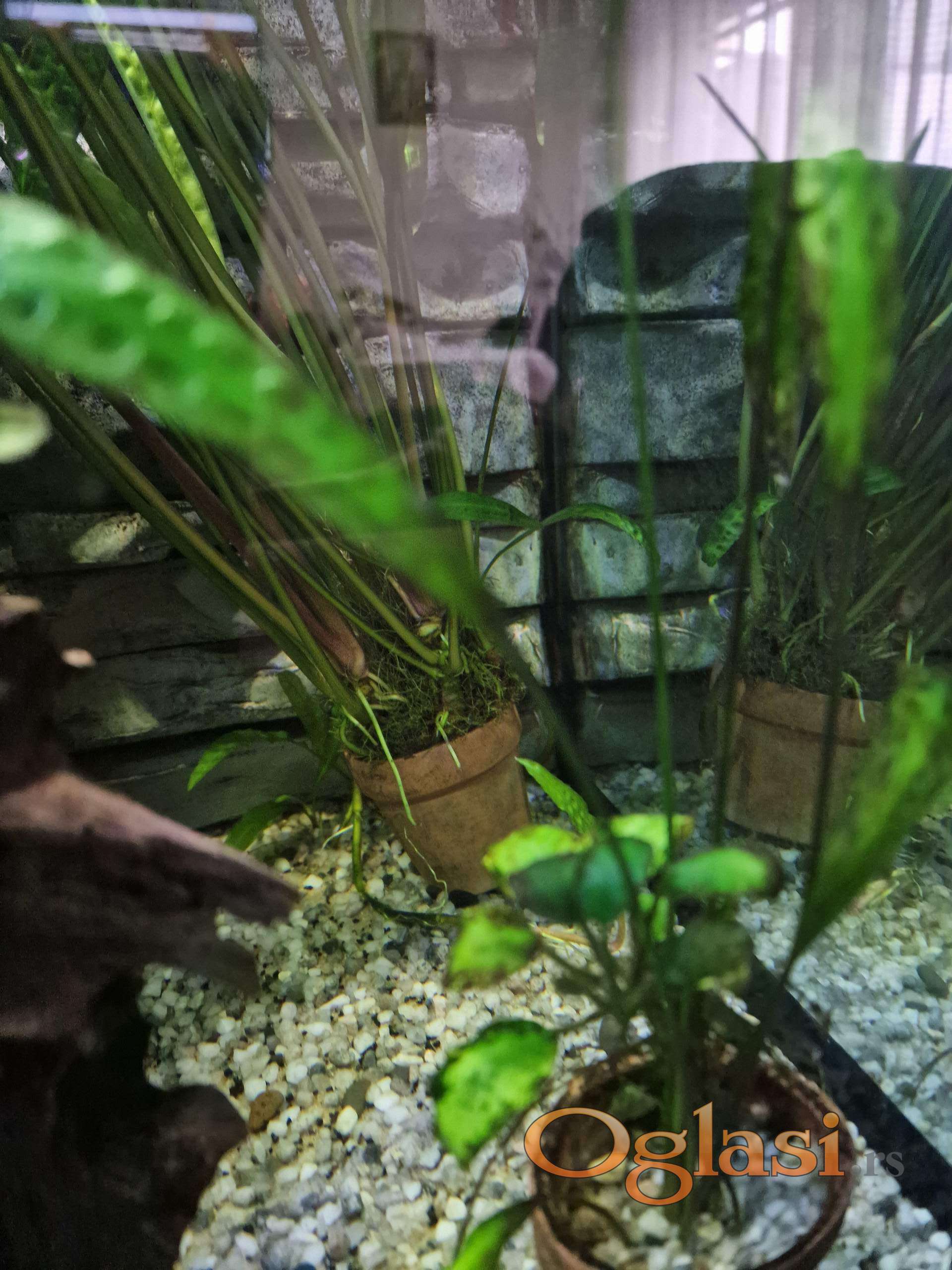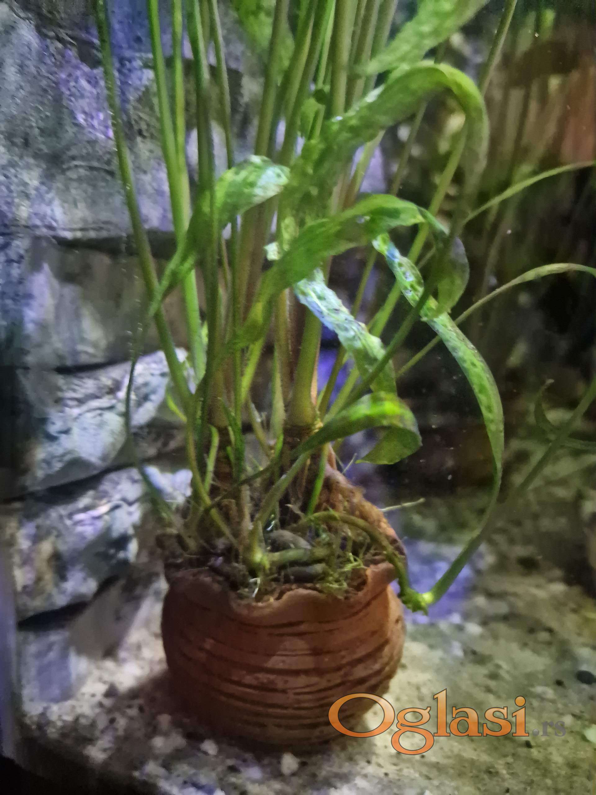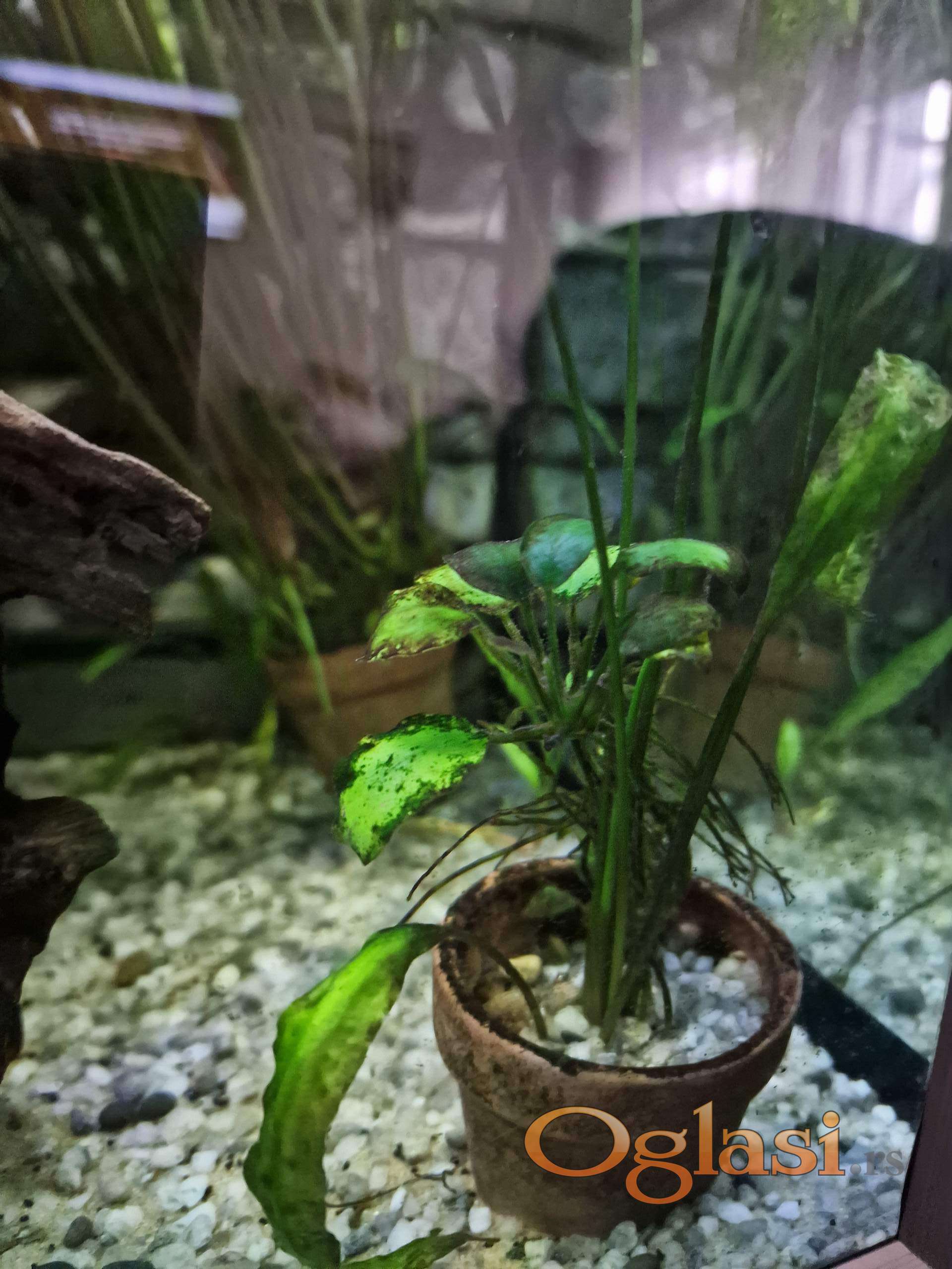 Zbog gašenja većeg akvarijuma prodajem Cryptocoryne aponogetifolia u šest manjih saksija po 10 eur, jedna veća nana anubius 15 eur i jedan panj 25 eur. Na slikama se vidi sve, moze i pojedinačno, dogovor