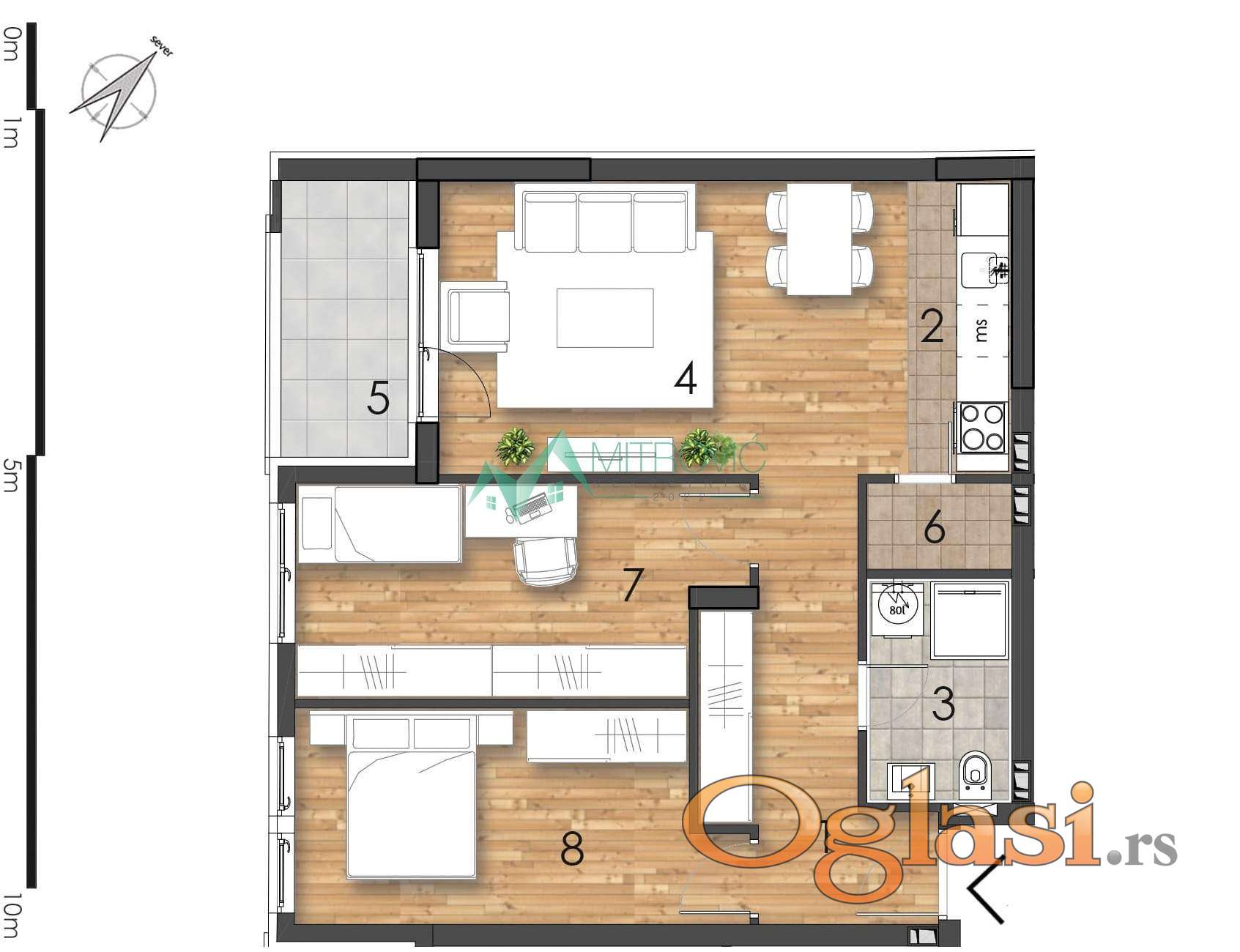 U ponudi funkcionalan trosoban stan u okviru modernog stambenog kompleksa u izgradnji, smeštenog na izuzetnoj lokaciji. Stan je pažljivo projektovan da pruži maksimalnu iskorišćenost prostora – dnevni boravak sa trpezarijom i kuhinjom, dve prostrane spavaće sobe, kupatilo i terasa.