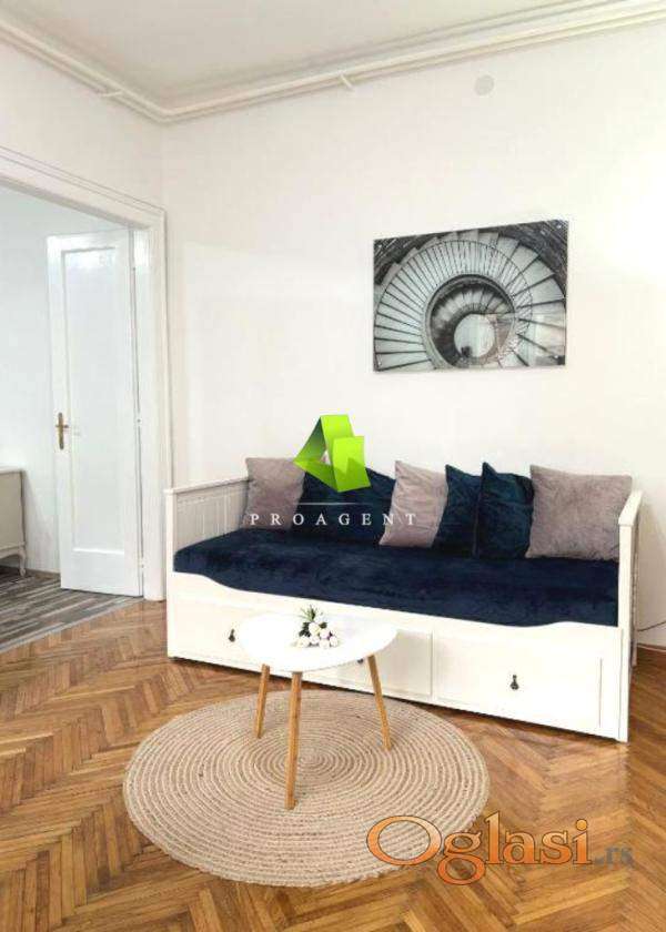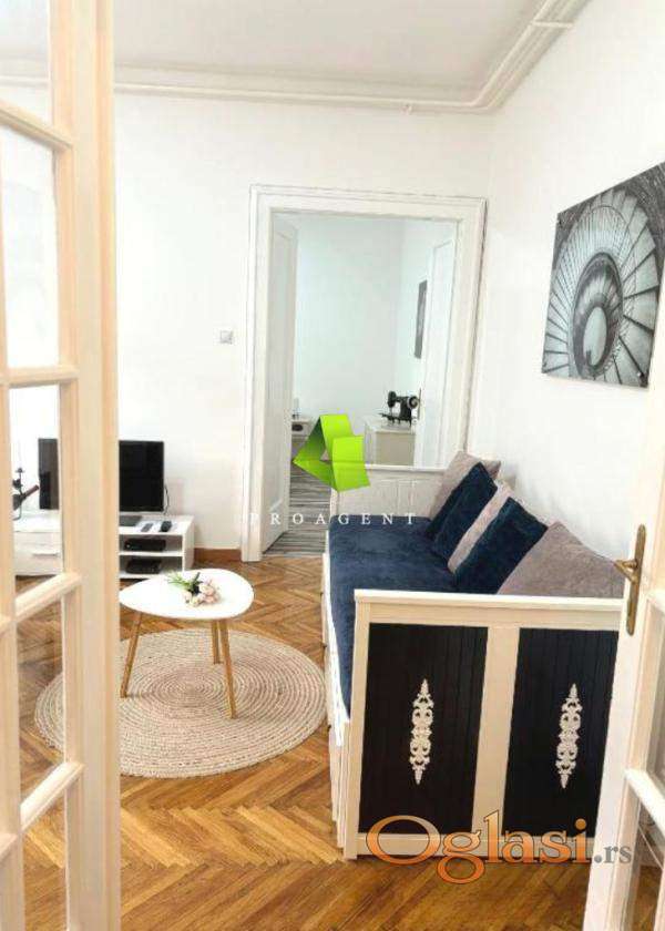 Izdaje se lep salonski stan u strogom centru grada. Stan je jednoiposobne strukture, površine 50m2, nalazi se na II spratu stambene zgrade bez lifta. Sastoji se iz ulaznog hodnika, dnevnog boravka sa trpezarijom, spavaće sobe, kupatila. Grejanje je etažno. Stan je opremljen nameštajem i potrebnim uređajima. Pri uređenju stana se vodilo računa o najsitnijim detaljima, pa odiše luksuzom i elegancijom. Nalazi se na odličnoj lokaciji, u blizini svih važnih institucija i gradskih dešavanja i predstavlja pravo mesto stanovanje za sve koji vole urbani način života. Agencijska usluga za iznajmljivanje nekretnine je polovina jedne mesečne kirije, koja se naplaćuje jednokratno. Hvala Vam što ste pogledali oglas. Za više informacija o ovoj ili drugim nekretninama i zakazivanje razgledanja kontaktirajte agenta na broj telefona iz oglasa (poziv, sms, viber) ili putem e-maila. Kompletnu ponudu dostupnih nekretnina možete pronaći na našem sajtu. Agencija Proagent nekretnine je upisana u Registru posrednika pod brojem: 940.