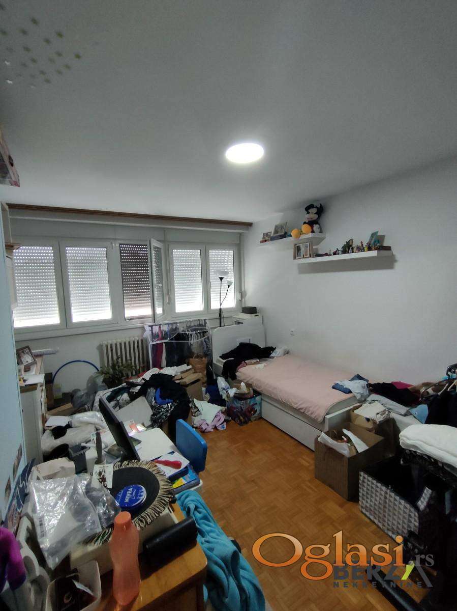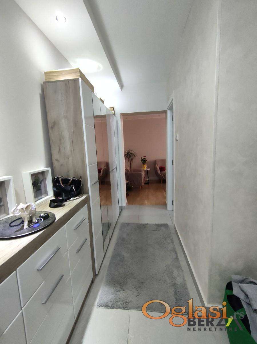 Agencijska šifra: 1007918. Prodaje se potpuno renoviran trosoban stan na drugom spratu zgrade kod tržnog centra Merkur u Novom Sadu. Sastoji se od dnevnog boravka, dve spavaće sobe, kuhinje sa ostavom, kupatila i zatvorene terase. Ovaj stan koji je idealnog rasporeda jer se u sve prostorije ulazi zasebno iz hodnika, renoviran je pre par godina od poda do plafona. Zamenjene su sve instalacije, stavljena je nova PVC stolarija, nova rasveta, kupatilo i kuhinja. U cenu stana ulazi nameštaj po meri iz predsoblja i kompletna kuhinja. Postoji mogućnost dogovora i za ostatak nameštaja. Kvalitetna PVC stolarija, kao i uvučenost zgrade od kolovoza pruža potpuno izlolovanost od saobraćajne buke, uz puno zelenih površina karakterističnih za Detelinaru. Stan je uknjižen 1/1.Berza nekretnine, Novi Sad, reg broj posrednika 1020