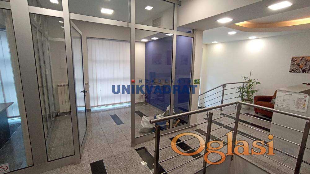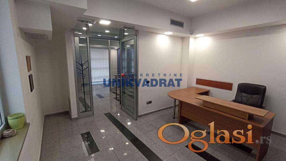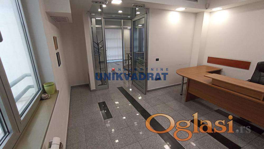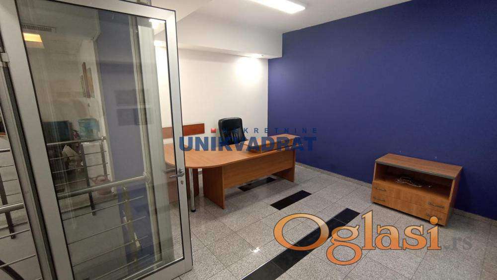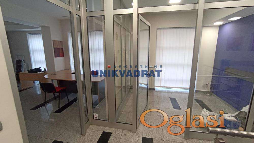 Prijemni deo,šest kancelarija,toalet,kuhinja i 20m2 dvorišta.