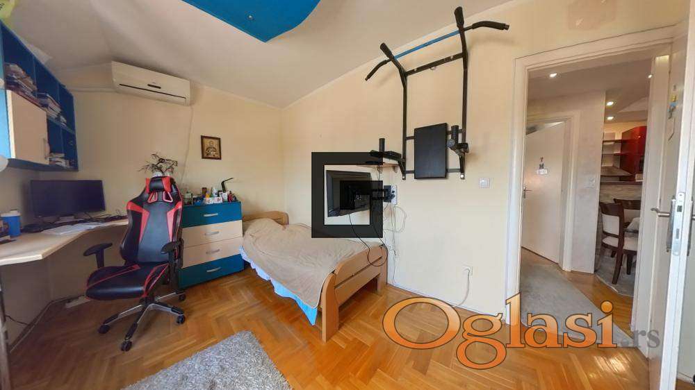 Na prodaju prostran i funkcionalan duplex stan na Karaburmi, površine 109m², smešten na 5. (poslednjem) spratu stambene zgrade.