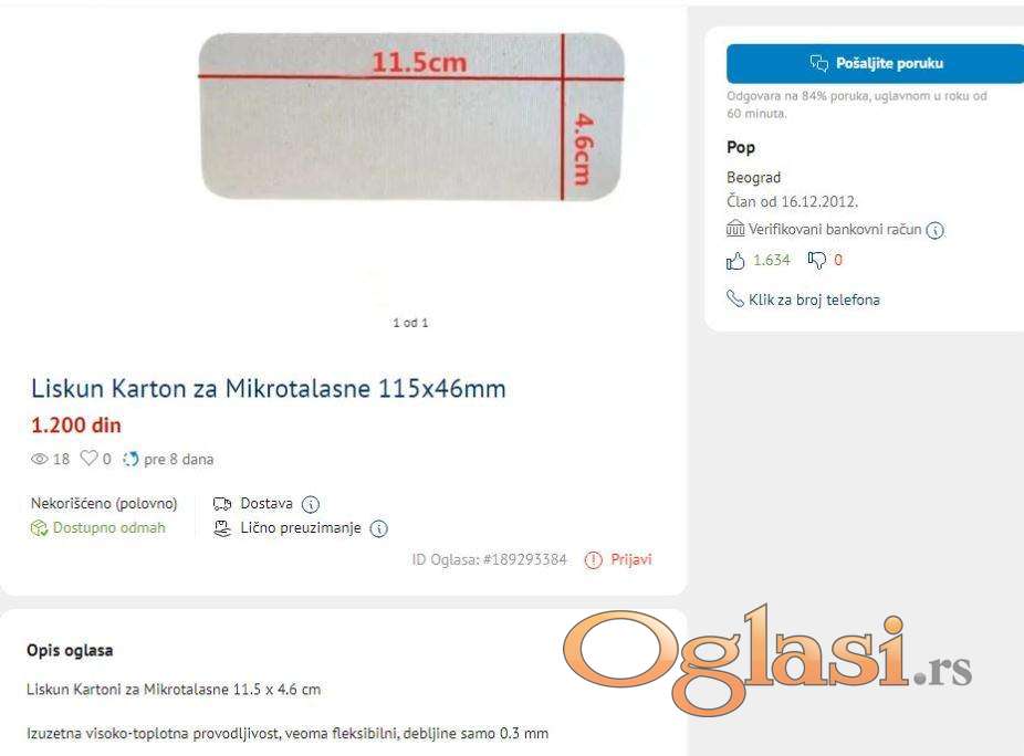 Nekada od ovog jednog komada mogu da se iseku i 2 ili 3kom zavisno od dimenzija Vaseg liskuna.