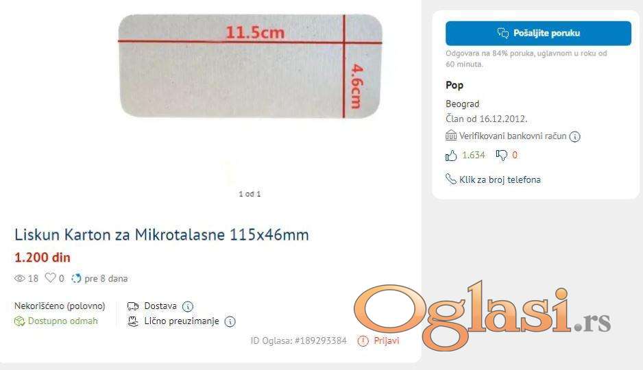 Liskun Karton za Mikrotalasne standardni 12x15cm