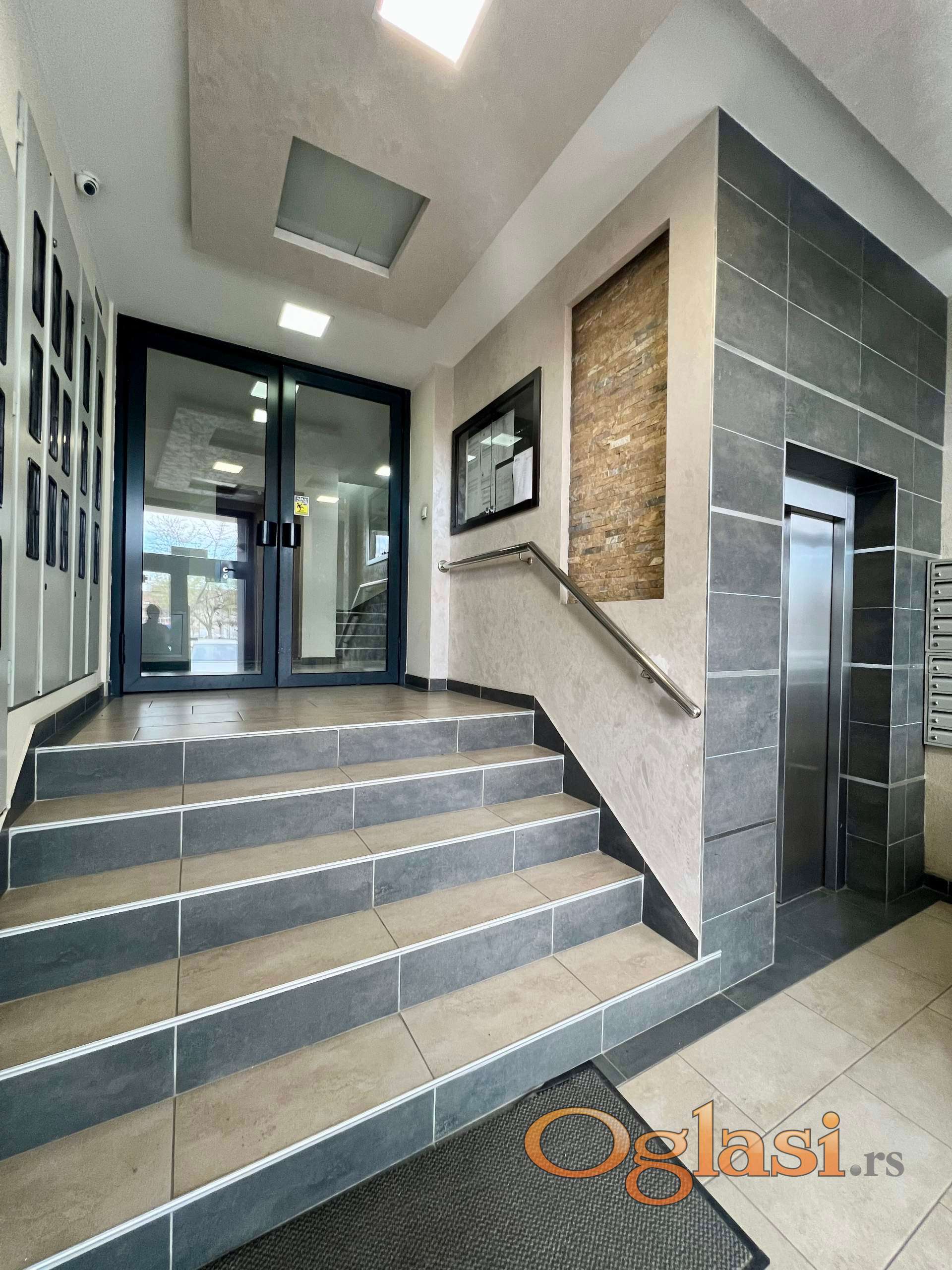 Ispred zgrade imate parking. Sam ulaz u zgradu je obezbeđen i siguran: interfon vam omogućava da goste pustite direktno iz stana, dok je pristup zgradi kontrolisan čipom ili šifrom, tako da samo vi i oni koje odaberete imate ulaz.