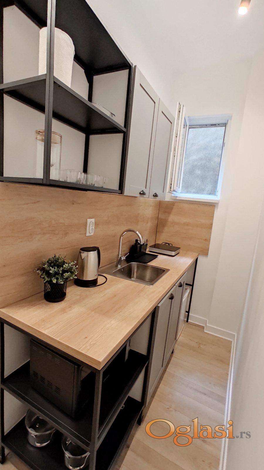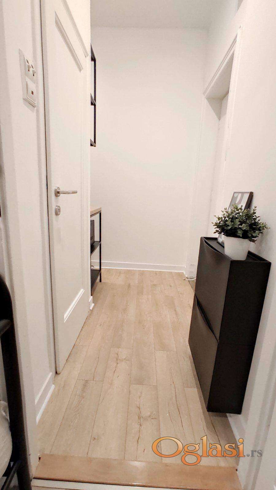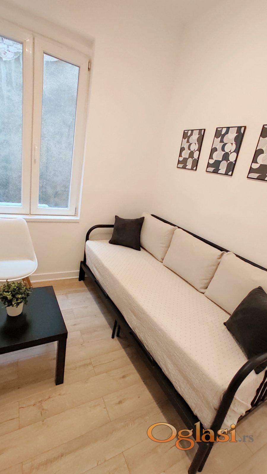 Kompletno renoviran, opremljen stan u samom centru grada. Odlicna povezanost gradskim prevozom sa svim delovima grada. Niski mesecni troskovi rezija. Stan je pogodan za stanovanje i kao poslovni prostor.
