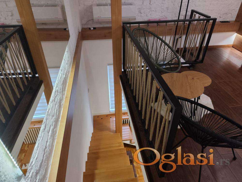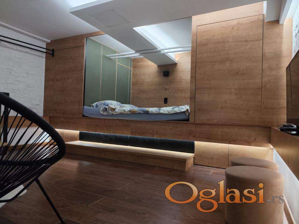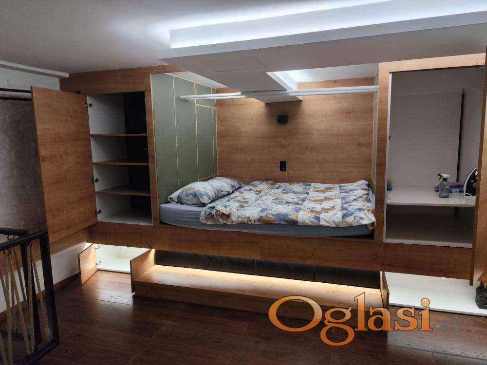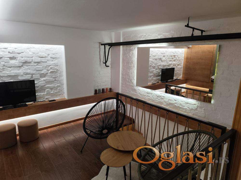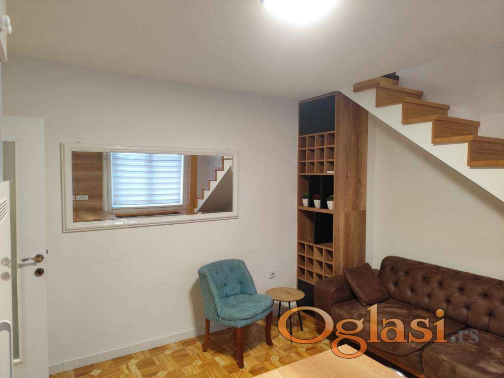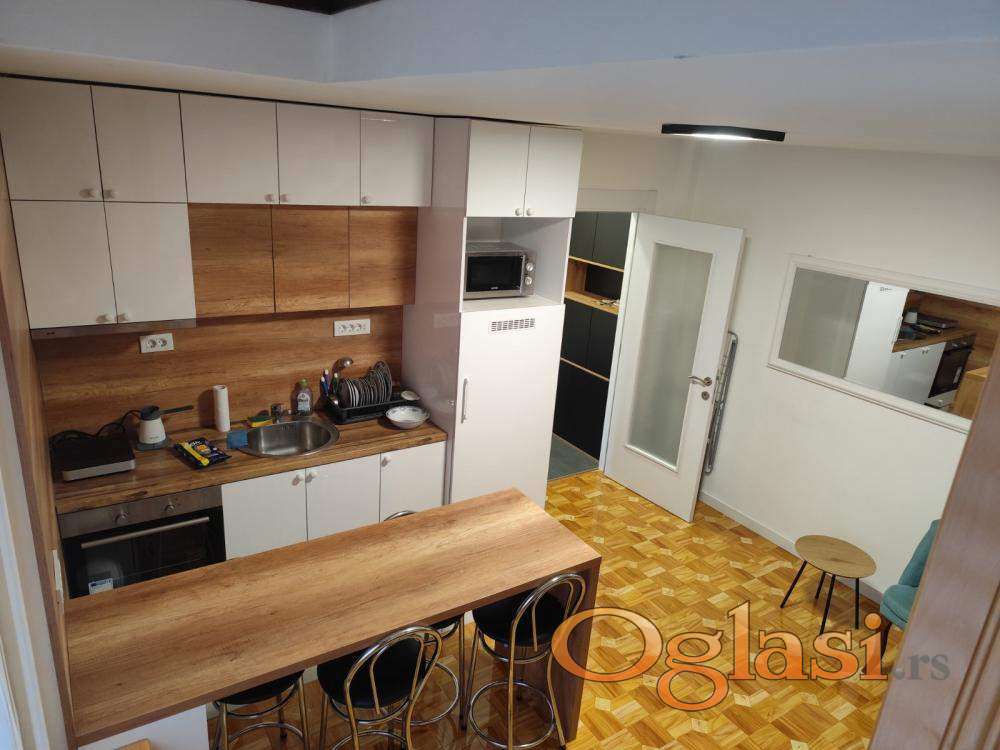 Izdaje se potpuno renoviran jednosoban stan od 48 kvadratnih metara sa galerijom. Stan se nalazi na visokom prizemlju osmospratne zgrade iz 1980. godine koja poseduje lift i podrum. Jedini je stan u prizemlju i orijentisan je ka dvorištu, što obezbeđuje mir i tišinu. Kompletno je opremljen – internet, televizor, klima, veš mašina, mikrotalasna rerna i potpuno opremljena kuhinja sa frižiderom, zamrzivačem, šporetom i rernom.