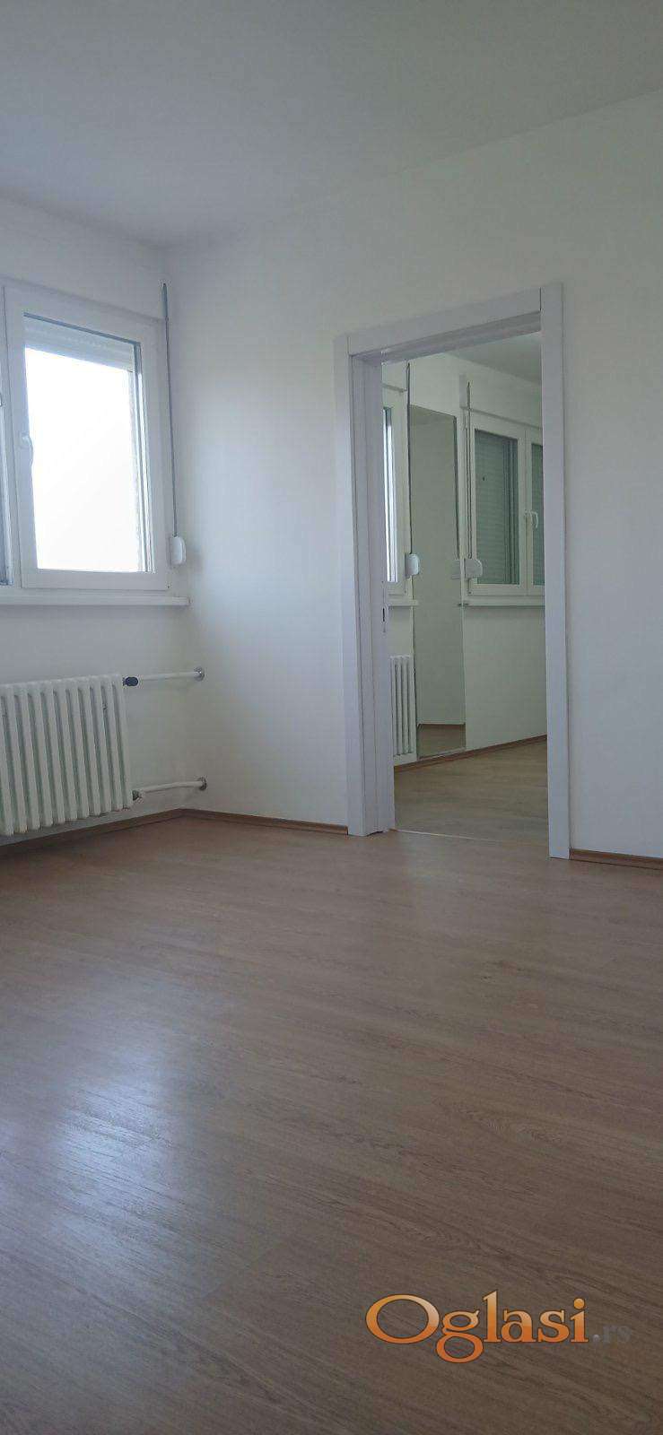 Kompletno je renoviran – zamenjene su sve vodovodne i elektro instalacije, urađeno novo kupatilo, postavljen laminat, nova stolarija (prozori i roletne), unutrašnja vrata, kao i kuhinja sa pločicama.