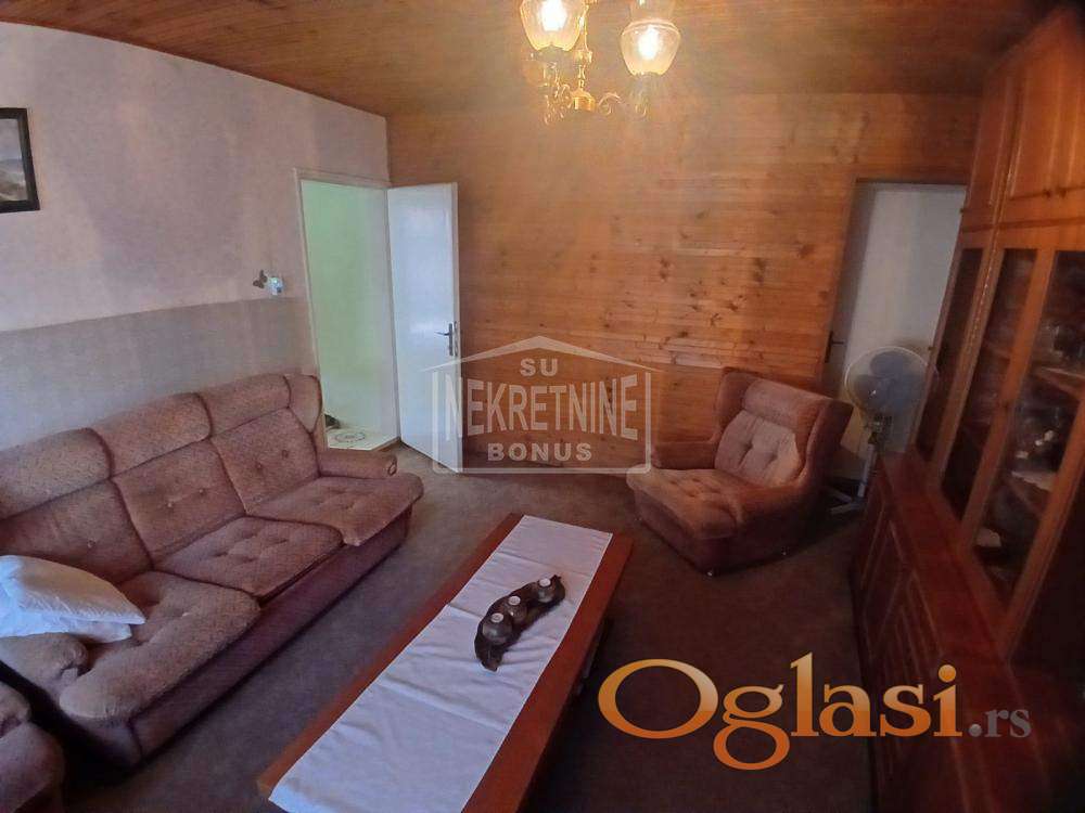 Samostalna kuća u samom centru grada, zidana ciglom, na odličnoj lokaciji sa jako lepim dvorištem, velikom garažom i šupom. Kuća poseduje: 3 sobe, veliki špajz, kuhinju, trpezariju i kupatilo. Može na kredit.