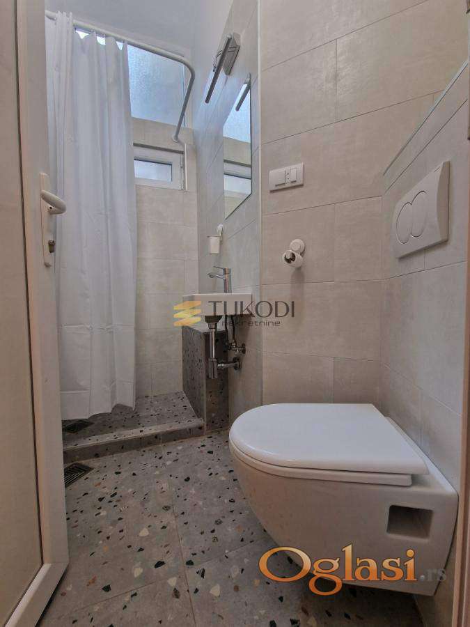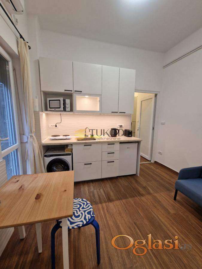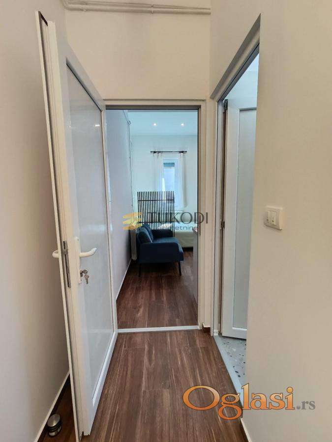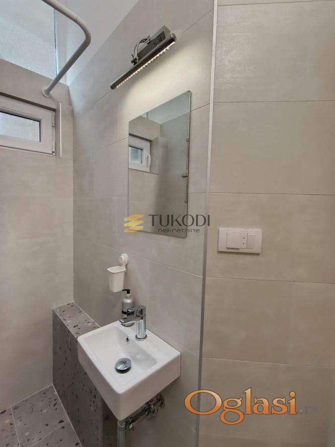 Prostor je pažljivo renoviran i opremljen modernim nameštajem, minimalistički, uz sve neophodne uređaje poput veš mašine, frižidera, klime, televizora i dodatnih kuhinjskih aparata.