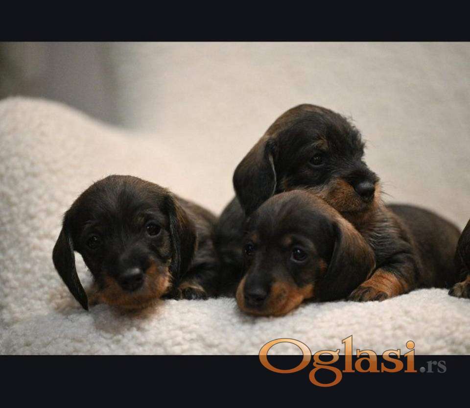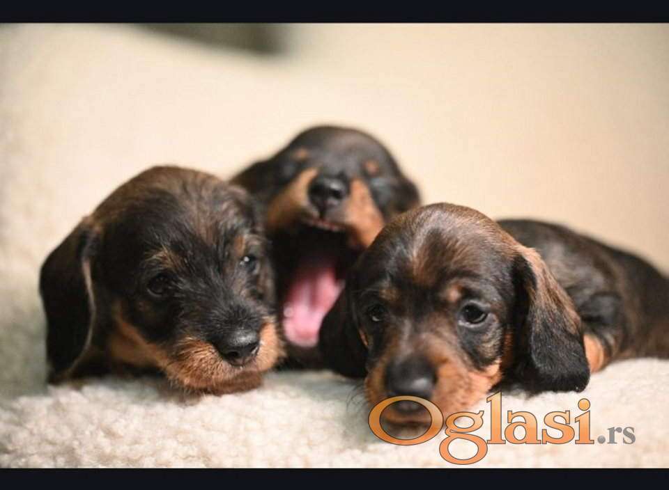 Na prodaju štenci rase oštrodlaki jazavičar - kunićar (odrasla jedinka raste do 3,5kg). Oštenjeni su 3.2.2026. i vakcinisani.