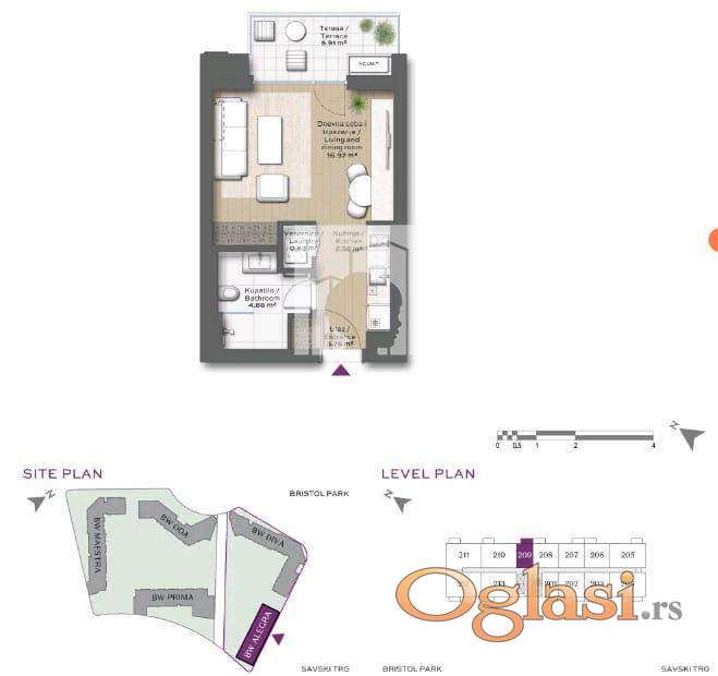 📐 Struktura:ulazni hodnik,dnevna soba sa kuhinjom i trpezarijom (open space), terasa,kupatilo i vešeraj