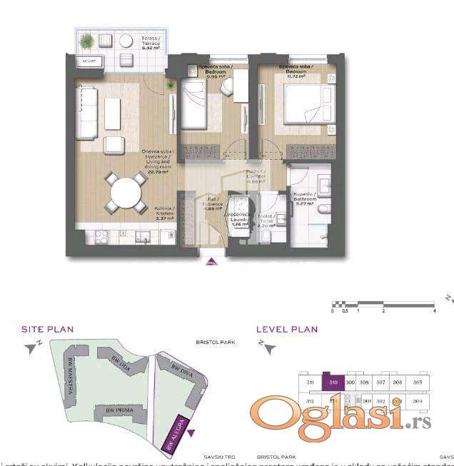 -NA TRECEM SPRATU SLOBODAN JE STAN SA DVE SPAVACE SOBE OD 71.79m2 po ceni od 298.888 evra sa PDV-om.