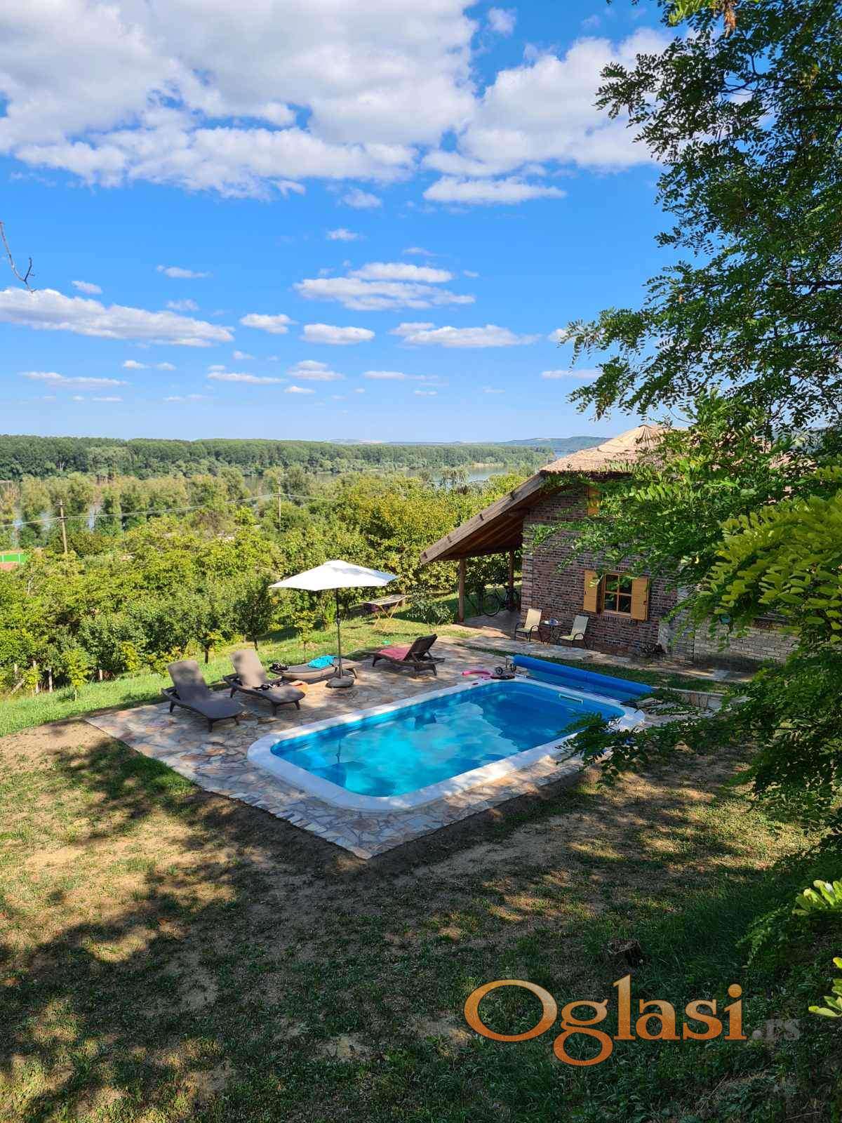Kuća sa bazenom, pogledom na Dunav, voćnjak – idealna za život ili odmor! Prodaje se funkcionalna i kompletno uredjena kuća idealna za porodični život ili odmor, smeštena u mirnom i prirodnom okruženju sa prelepim pogledom na reku Dunav, na prostranom i uredjenom placu veličine 2.766 m². Struktura kuće: Donji deo: prostrana dnevna soba povezana sa trpezarijom i kuhinjom, kupatilo, natkrivena terasa Gornji sprat: dve udobne spavaće sobe Eksterijer: Veliko, lepo uredjeno dvorište koje pruža potpuni mir i privatnost Bazen ispred kuće – idealan za osveženje tokom toplih dana Zidani roštilj – savršen za porodična i prijateljska okupljanja Kuća poseduje alarm i video nadzor. Pored veoma kvalitetne gradnje u kojoj preovladjuju prirodni materijali, cigla i drvo, bazena u dvorištu, raznih vrsti voćki, jedan od aduta ove nekretnine je neverovatan panoramski pogled na Dunav, koji pruža osećaj mira i povezanosti sa prirodom. Navedena cena je sa uračunatom agencijskom provizijom 3%. Za sve dodatne informacije i dogovor oko razgledanja nekretnine, kontaktirajte nas na telefon 065 9494659, Select Nekretnine, Registar posrednika br. 1781.