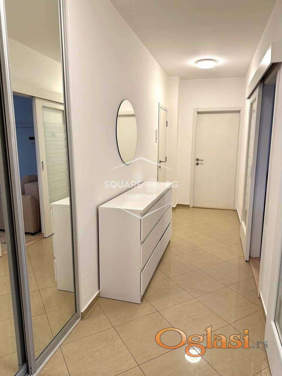 Svetao, potpuno opremljen stan u jednoj od najpogodnijih lokacija u Beogradu — mirna ulica, 5 minuta peške do Beograda na vodi i tržnog centra Galerija.