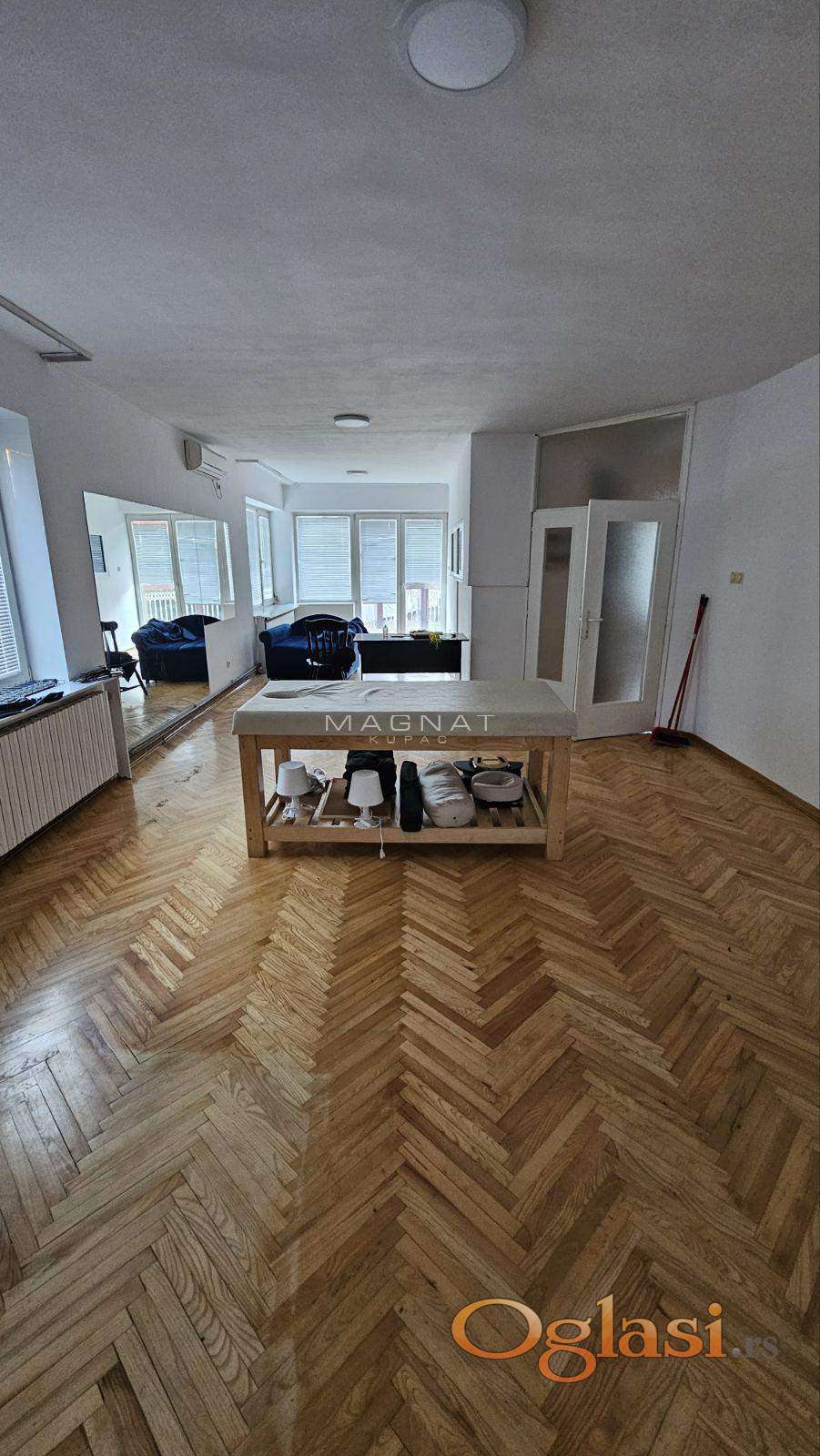 Izdaje se stan u Zemunu, u mirnom okruženju, prazan, sa četiri prostrane prostorije, kupatilom i dve velike terase, tako da je pogodan kako za stanovanje, tako i za poslovni prostor.
