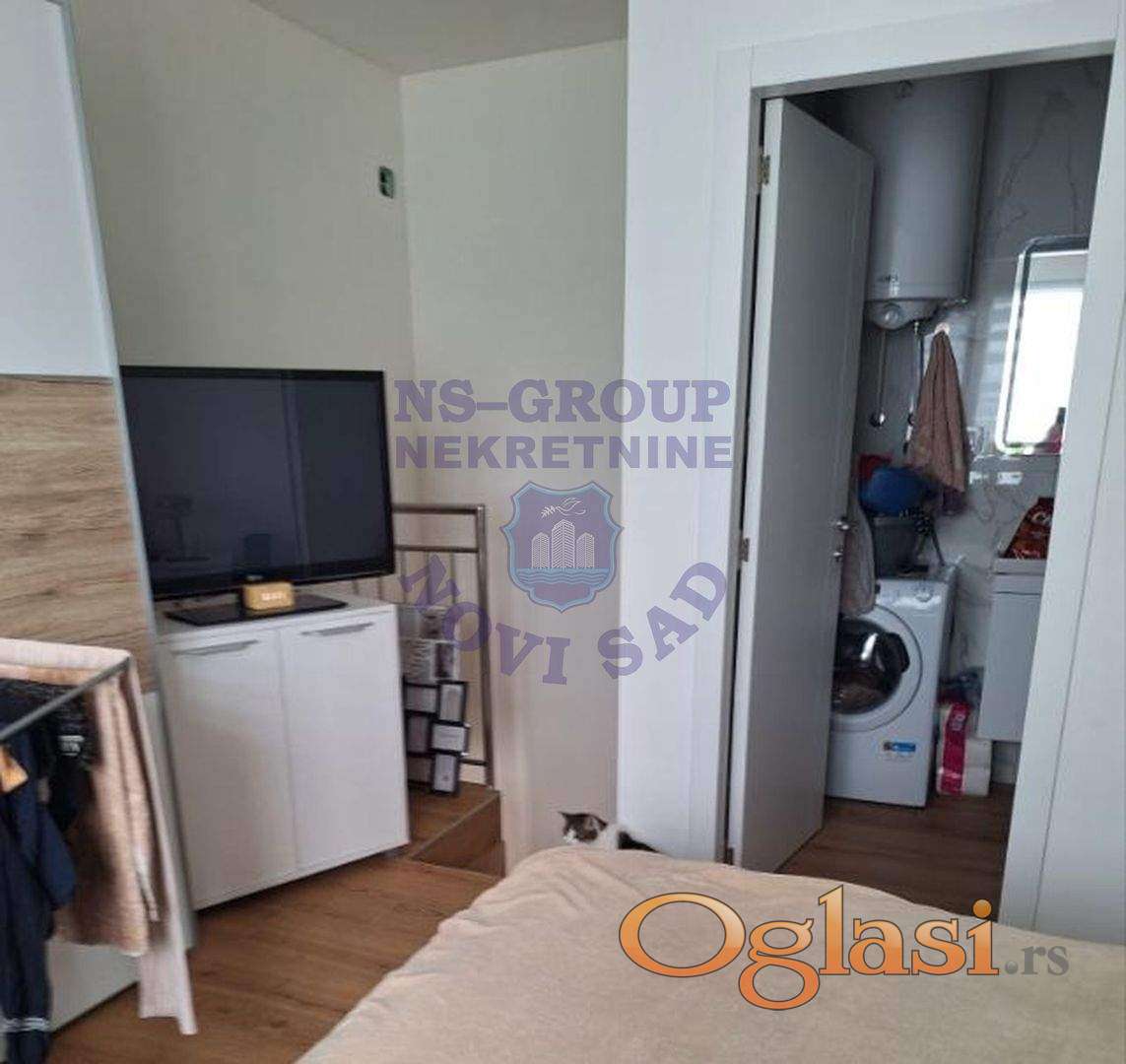 Prodaje se stan u Veterniku- duplex, 44m2 +terasa tj. nadstrešnica 10m2, donji deo je legalizovan, gornji sprat je u procesu legalizacije, prozori su od ALU stolarije višekomorne, roletne su na dugme, ima komarnike na svim prozorima, stan je napravljen 2023, ima podno grejanje i na inverter klime, komplet namešten, mali računi, , dole ima wc, kuhinju, trpezariju i dnevni boravak, gore spavaća soba i kupatilo, prodaje se kompletno namešten. Ima za decu u dvorištu igralište, letnjikovac i roštilj, kamere, svako ima svoje parking mesto .