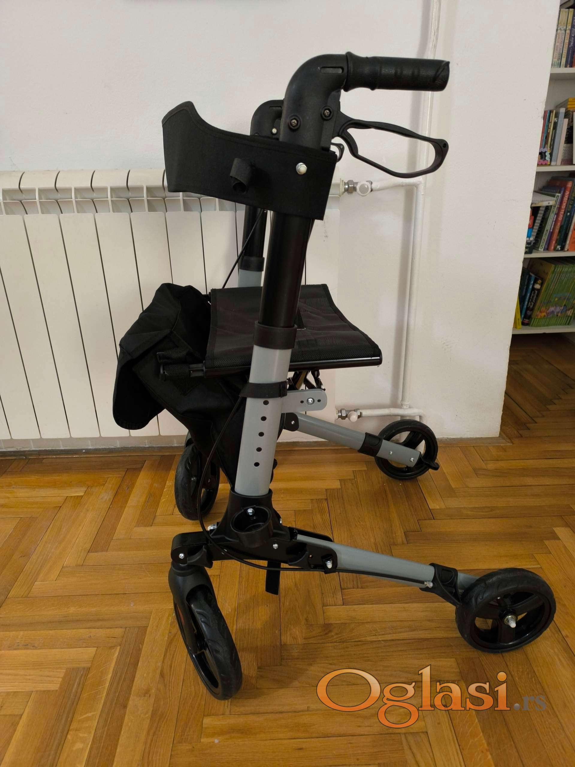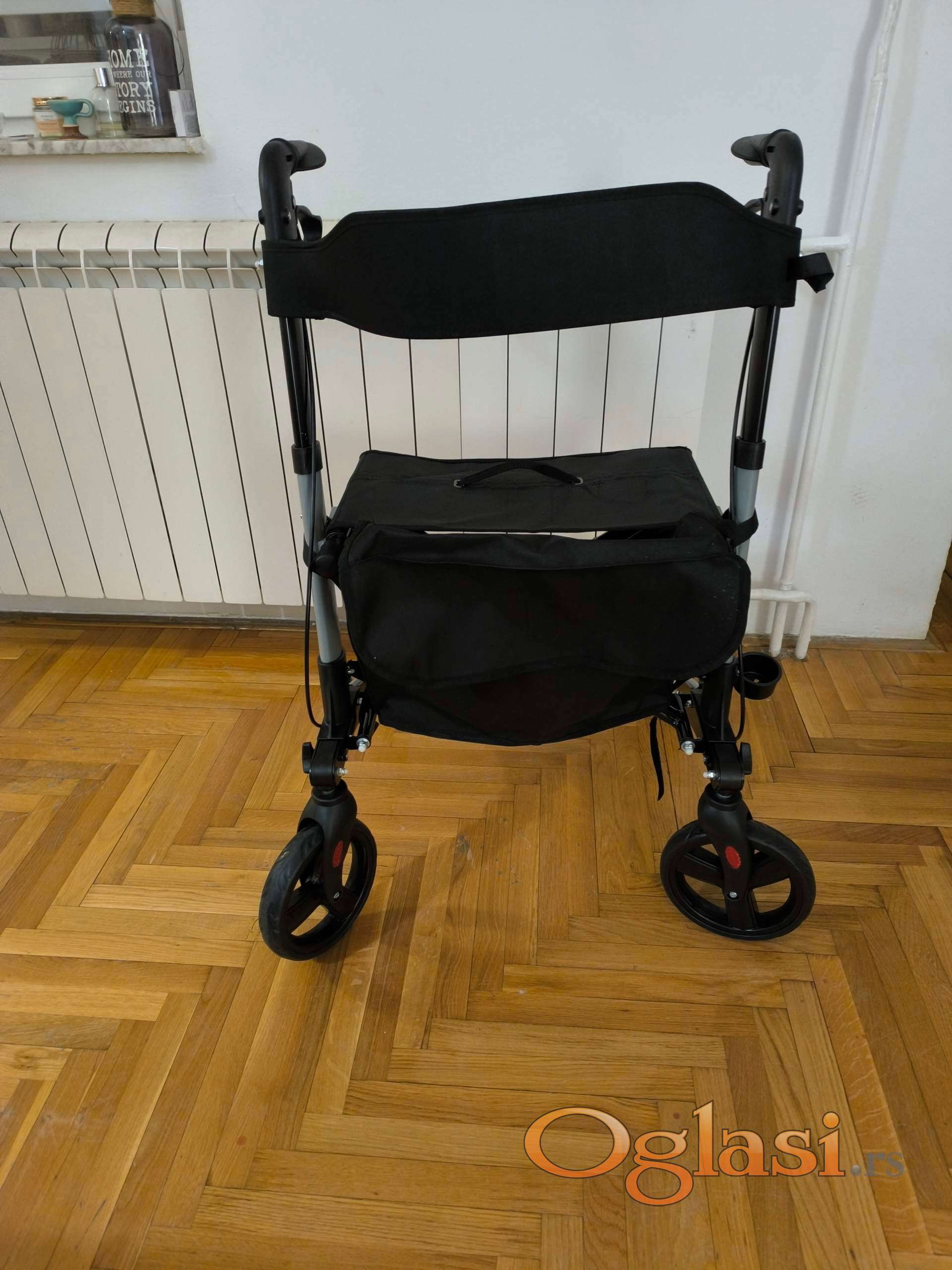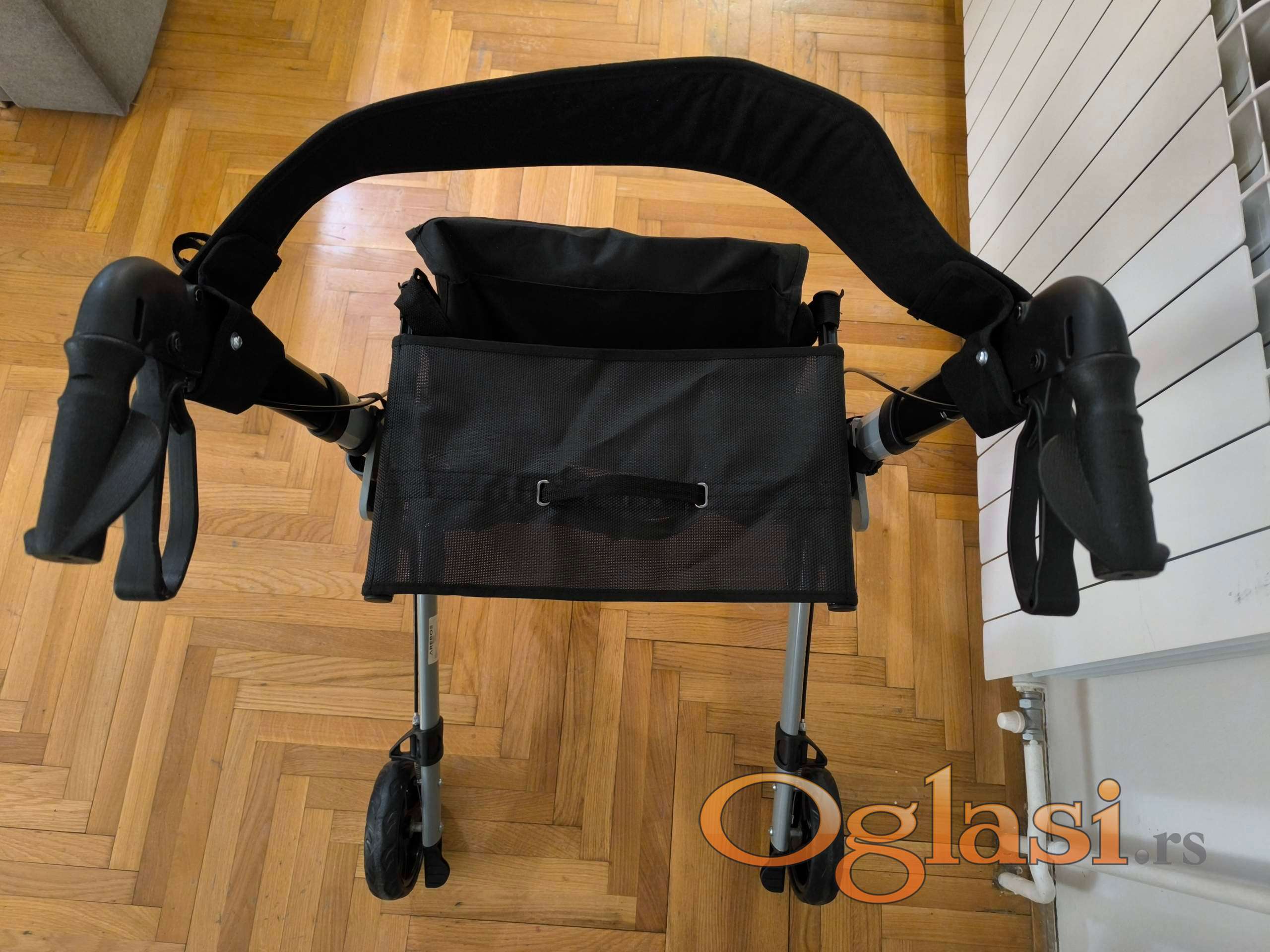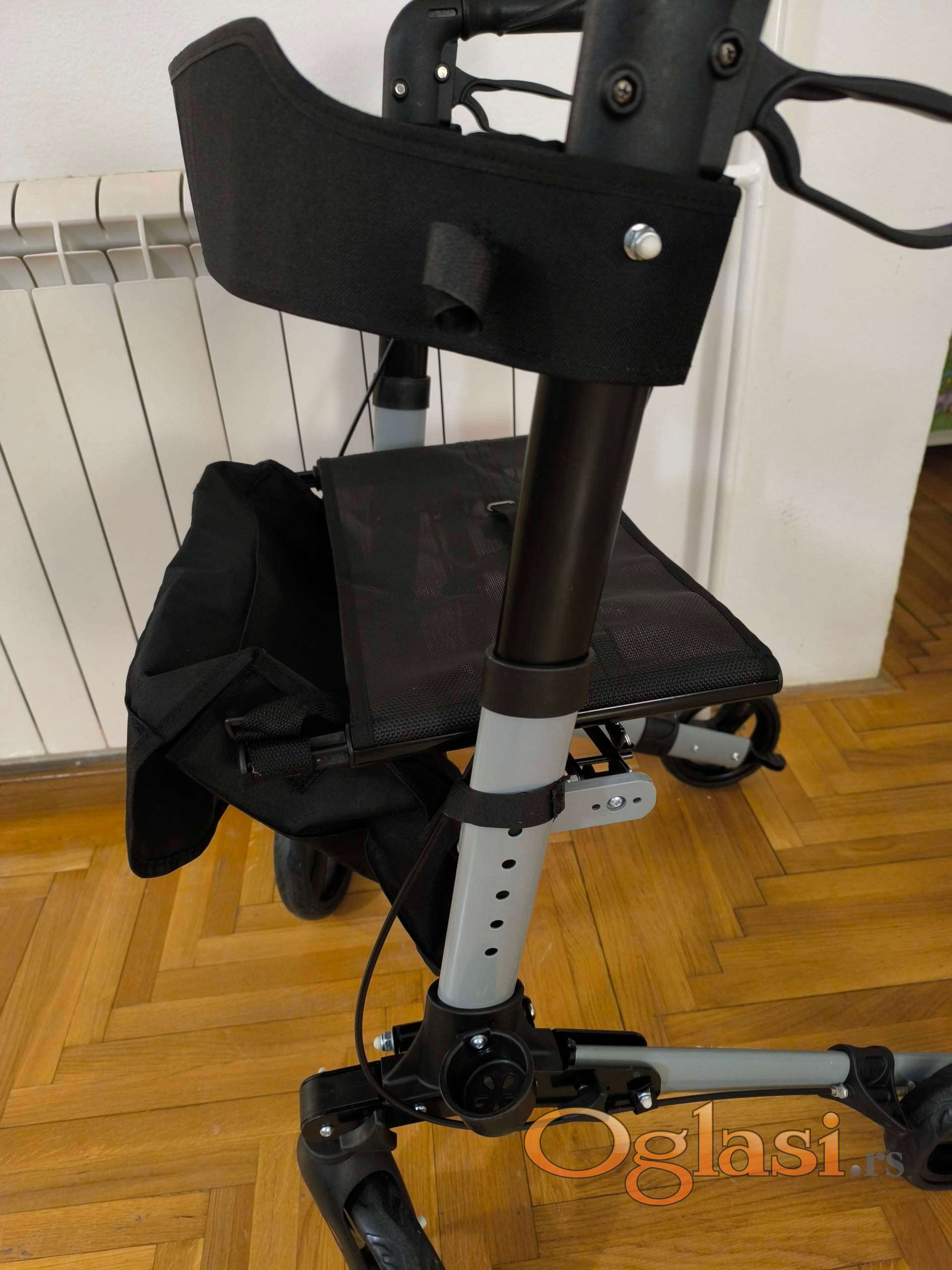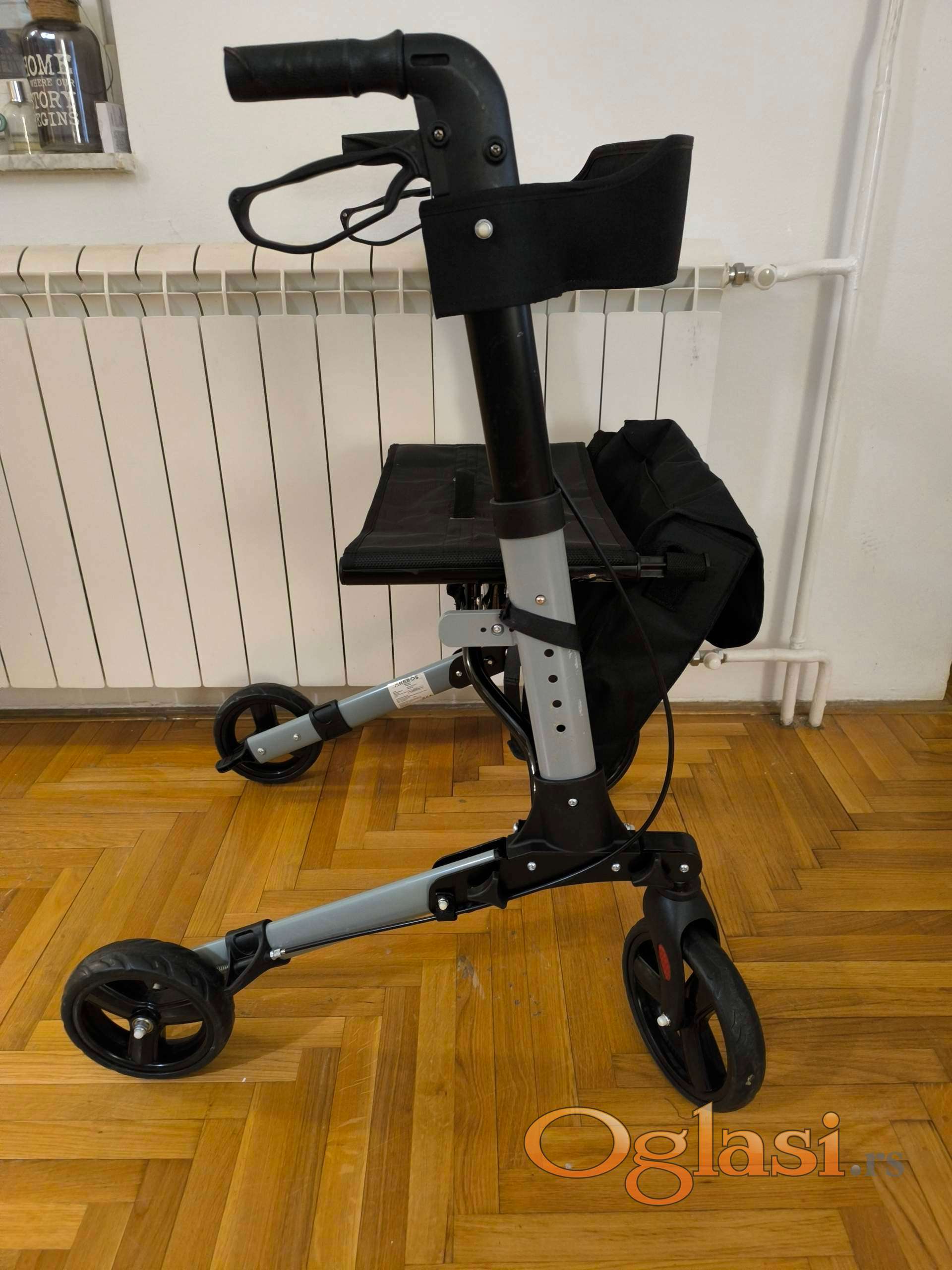 Sedenje: Pre sedenja obavezno zaključajte kočnice (parking pozicija). Nikada se ne odgurujte nogama dok sedite na rolatoru.