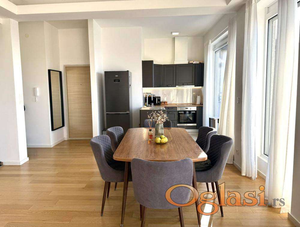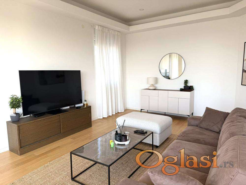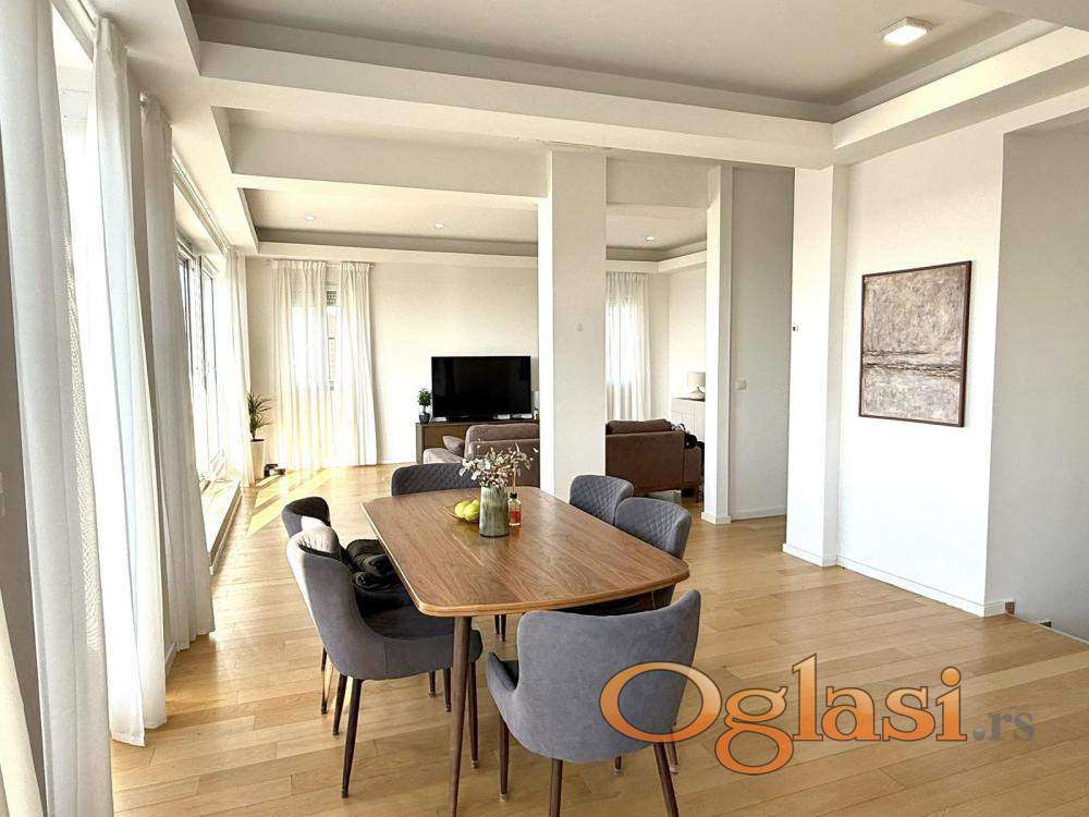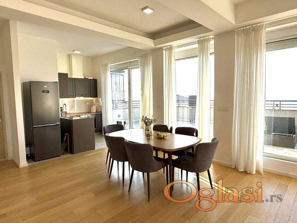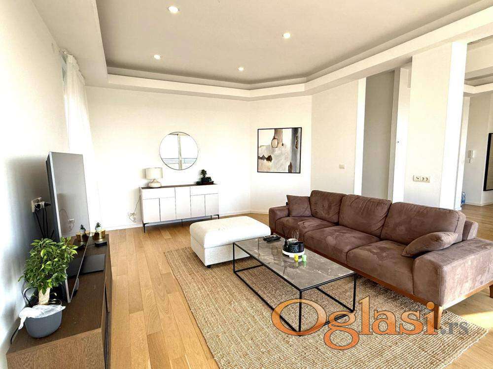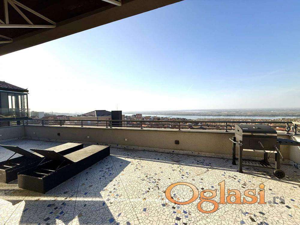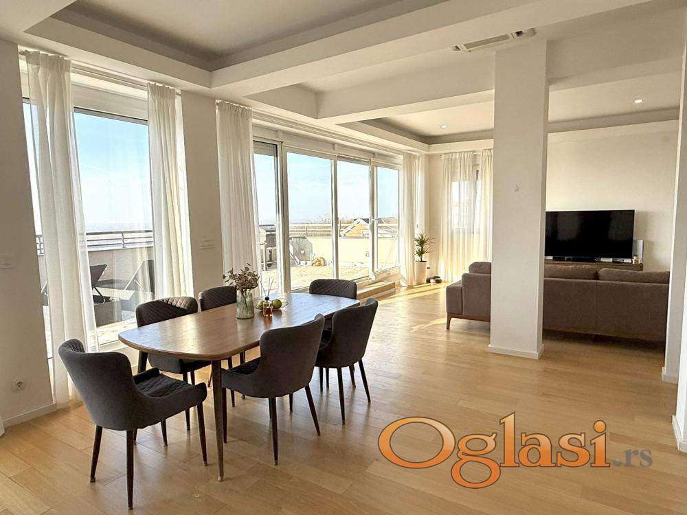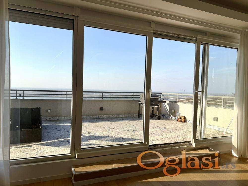 Luksuzan penthaus na Višnjičkoj banji, potpuno opremljen stan sa pogledom na Dunav i privatnim liftom za ulaz u stan,ograđen parking sa video nadzorom i rampom.
