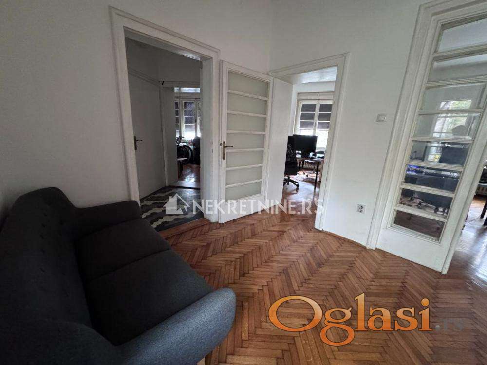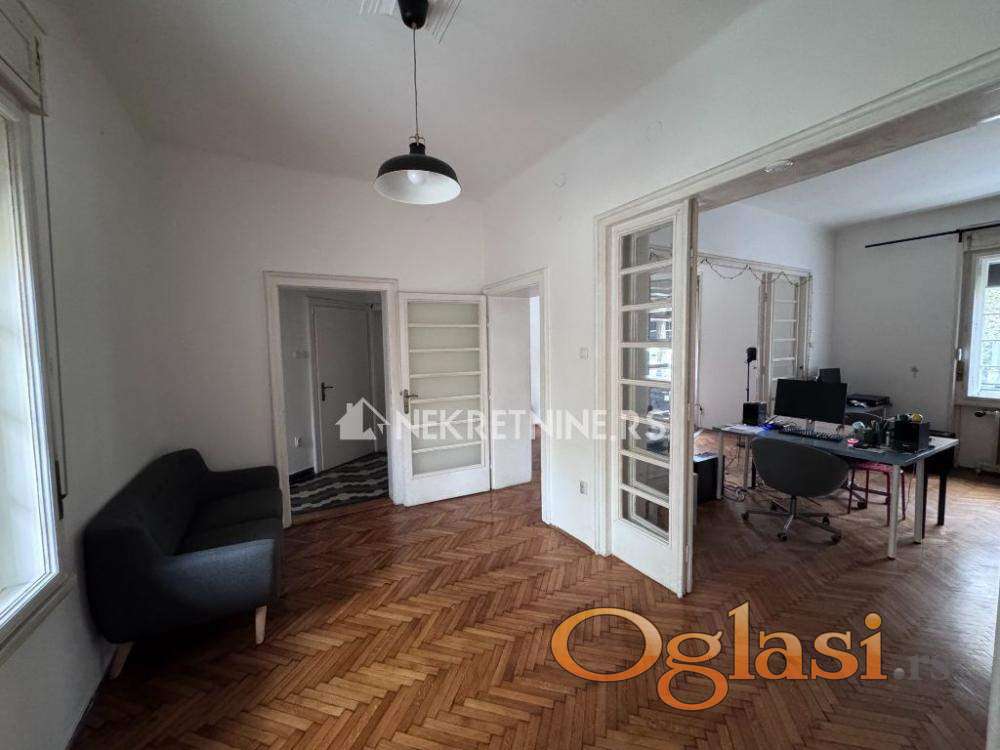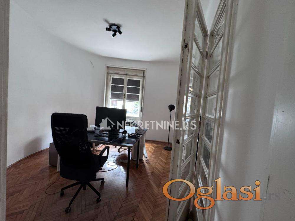 Stan se nalazi u visokom prizemlju kuće i poseduje zaseban ulaz, što ga čini pogodnim za kancelarijski ili poslovni prostor. Mirno okruženje, visoki plafoni i klasičan salonski raspored omogućavaju funkcionalno korišćenje prostora.