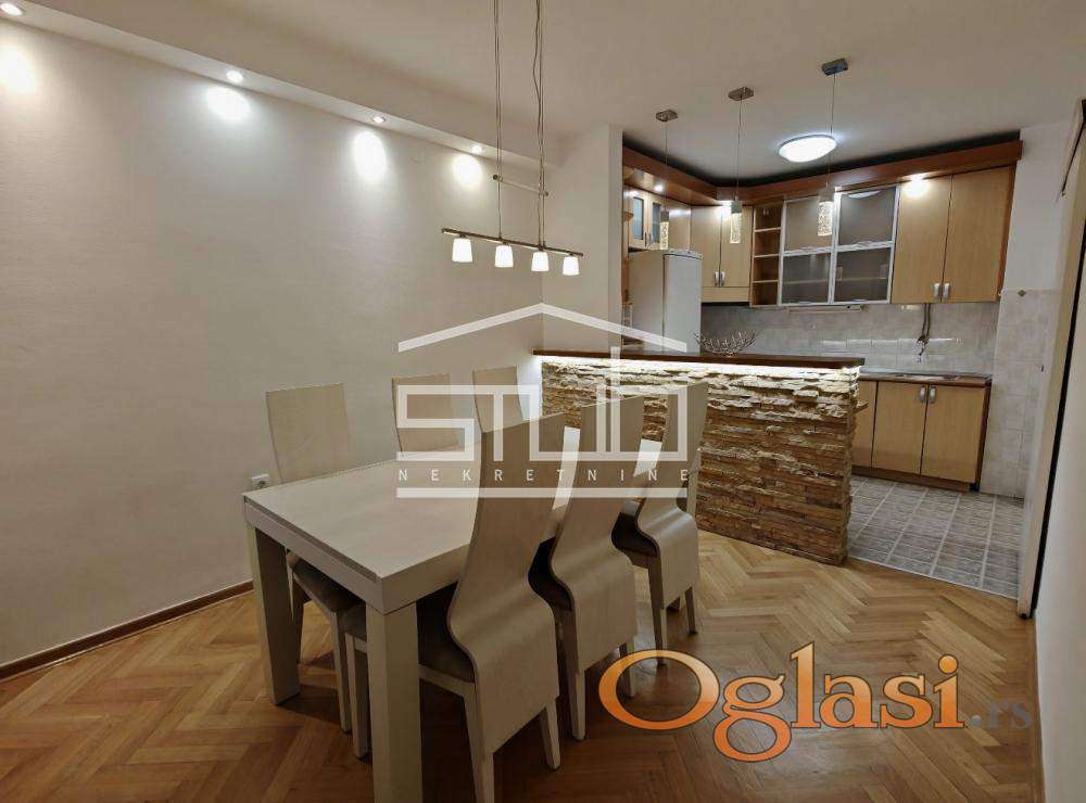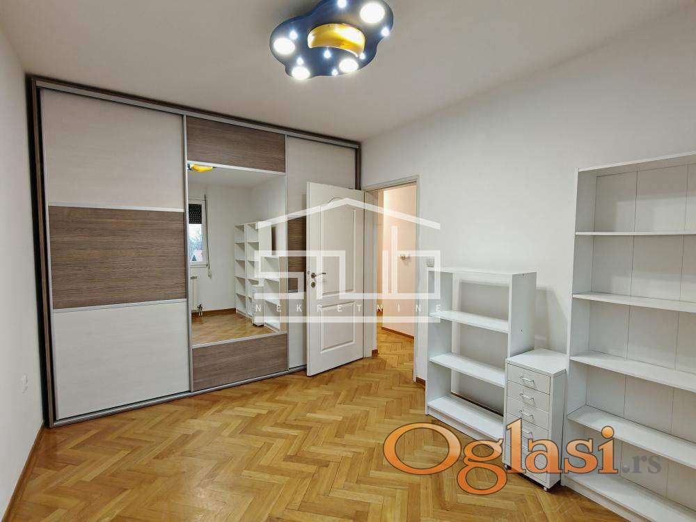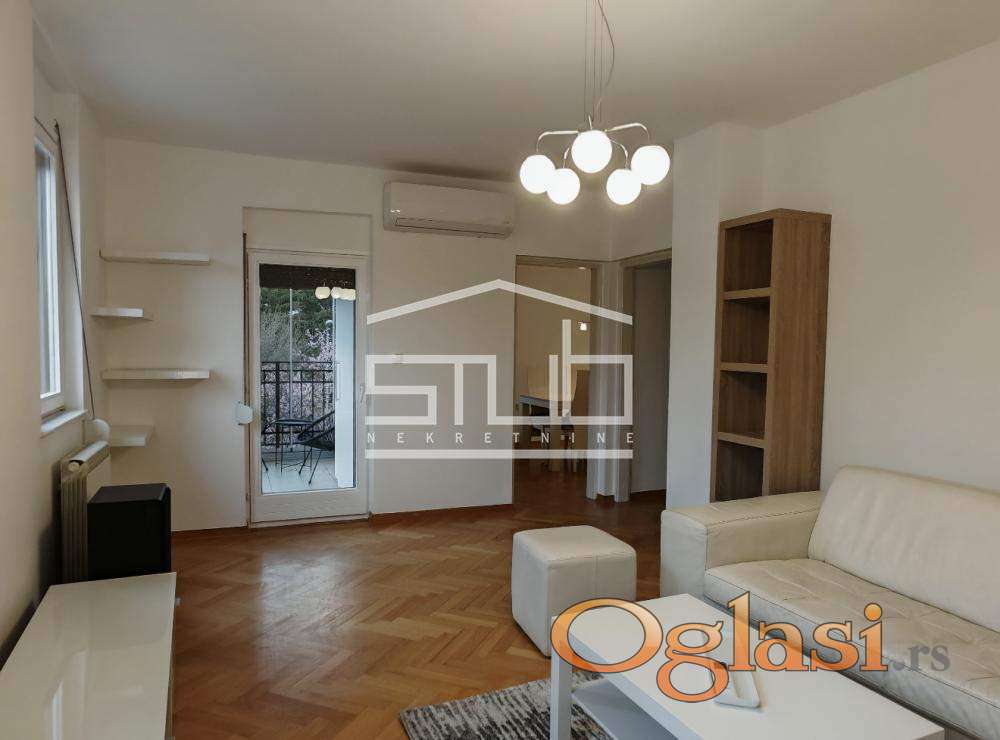 Izdajemo komotan, funkcionalan trosoban stan površine 82m2, smešten na 2. spratu zgrade na izuzetno traženoj lokaciji na Banovom brdu, u neposrednoj blizini Košutnjaka.