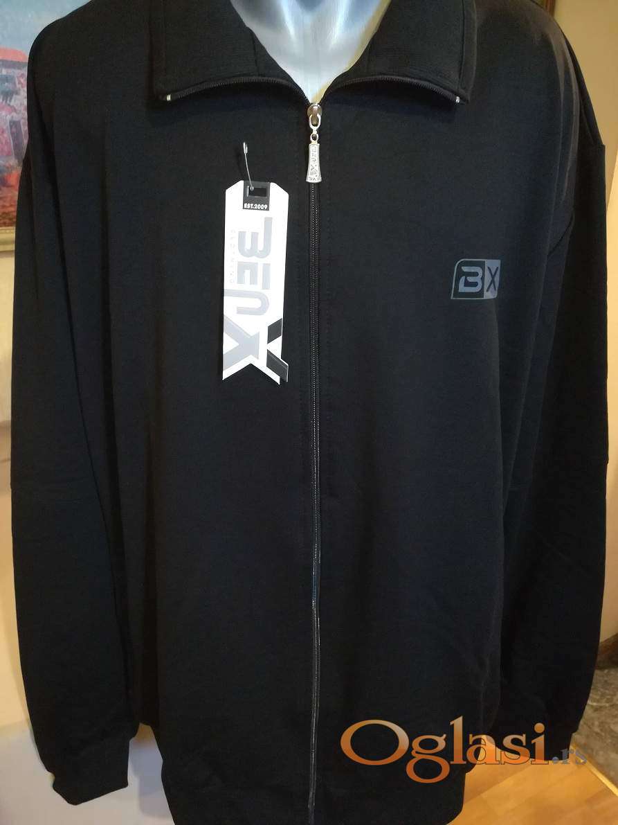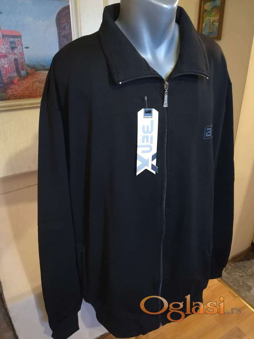 Novi muski duks sa kragnom u velikom broju Benx 5XL Crni. Novopazarski. Odlican muski duks za muskarce svih uzrasta. Uradjen od prijatnog i vrlo kvalitetnog materijala. Lagan, komotan, vrlo lepog dezena, lako se kombinuje sa bilo kojim komadom garderobe. Izuzetan muski duks koji ima dva dzepa sa prednje strane, kragnu i kopca se na rajferslus. Duks, takodje, ima ranflu na rukavima i dole na donjem rubu dukserice. Dzepovi na dukserici su sa ziperom. Super ide na farmerke, pantalone i trenerke. Mogu ga nositi i punije osobe sa preko 120 kg. Pamucna muska dukserica sa kragnom Benx je nova sa etiketom.