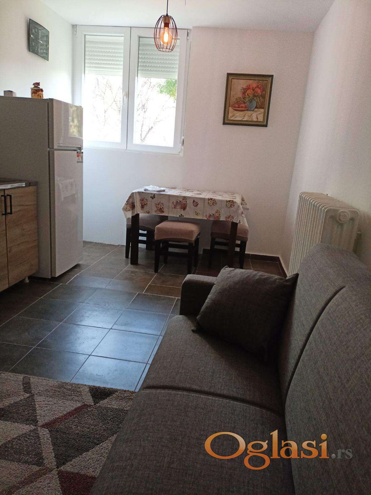Namešten jednoiposoban stan,idealno i za studente i za zaposlene,lep raspored hodnik, dnevni boravak, kuhinja, soba, kupatilo,nema terasu,nisu dozvoljeni kućni ljubimci, useljiv,cena 350 e+ depozit+ ag.provizija.