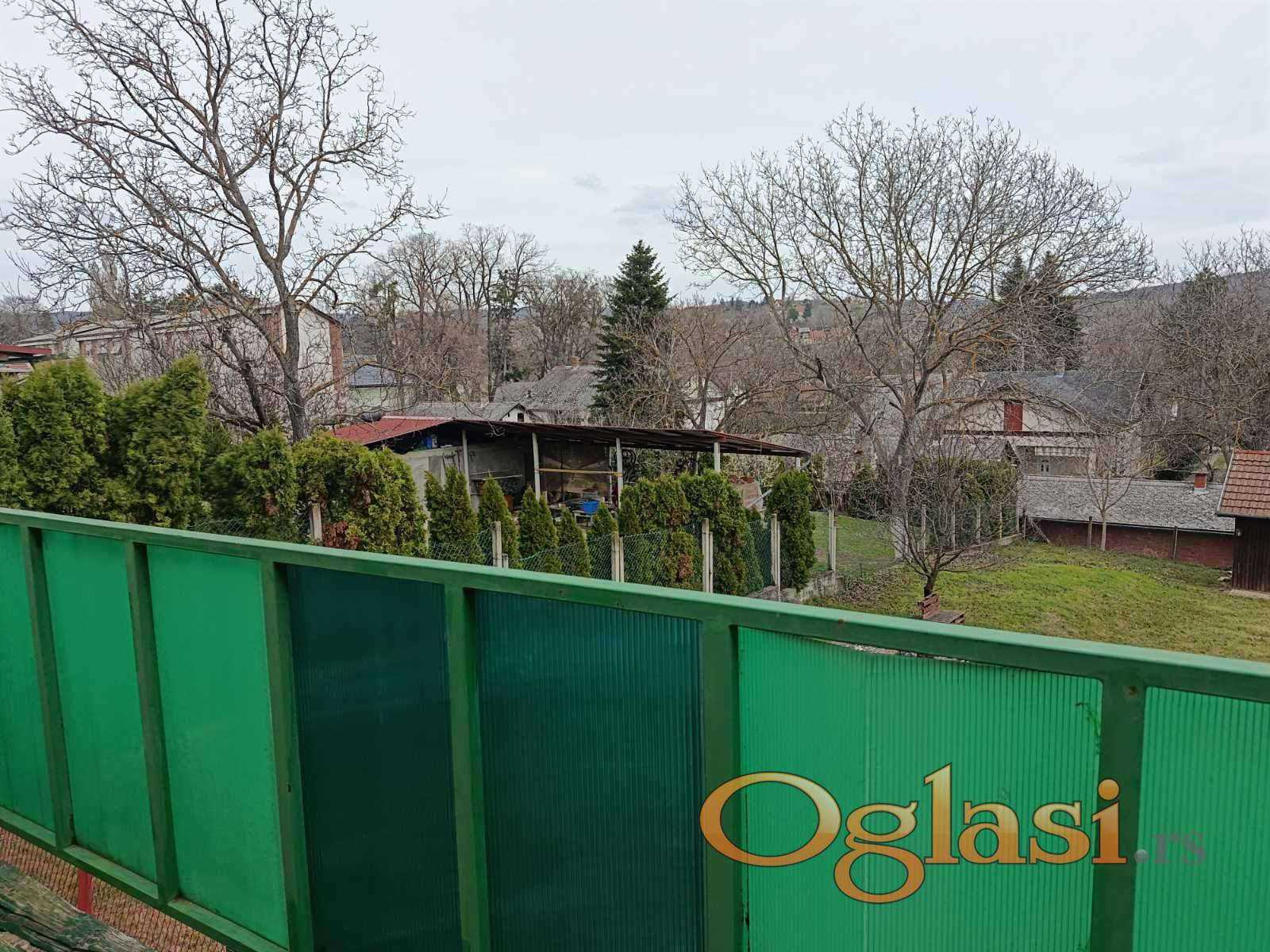 Prodaje se trosobna kuća 98m2na placu od 674m2 na top lokaciji . Kuća se sastoji od velikog podruma, dve spavaće sobe, dnevne sobe, hodnika, trpezarije, kuhinje, kupatila i velike terase sa prelepim pogledom. Kuća je starije gradnje, potrebno manje renoviranje, takodje na samom dvorištu ima bunar. Voda je gradska i bunarska, septička jama, struja monofazna, grejanje na klimu i čvrsto gorivo.Vlasnik 1/1, kuća nema tereta.Ispred kuće 2 parking mesta.Stolarija drvena, podovi pločice i laminat.Postoji gas ispred kuće .