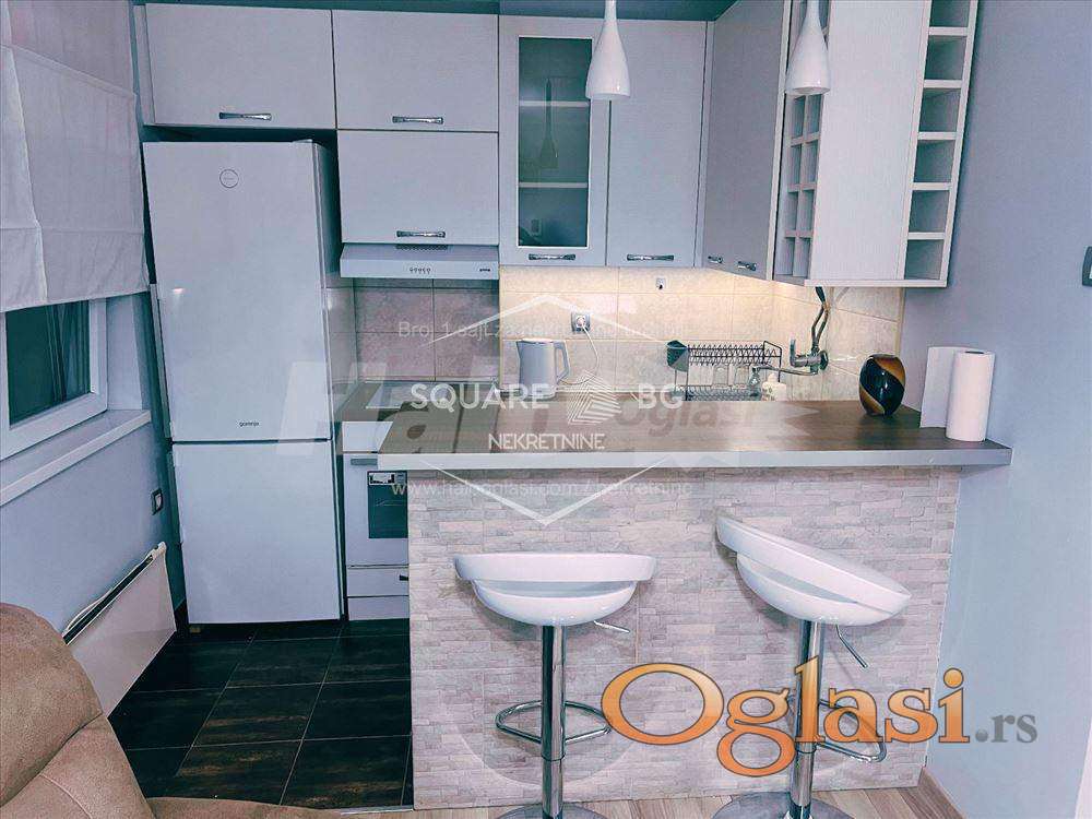 Predsoblje, dnevna soba, kuhinja sa šankom kupatilo i odvojena spavaća soba sa francuskim ležajem.