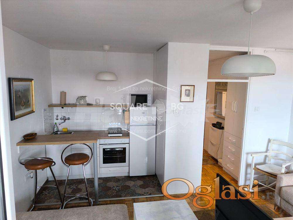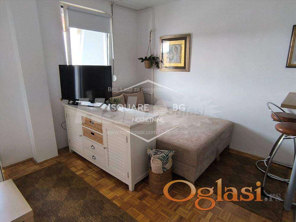 Studio na Dorćolu (kod hotela Mona), P = 33 m2 na desetom spratu. Stan je miran, svetao, maksimalno funkcionalan, sa prelepim pogledom, kompletno opremljen za konforan život. Ima brzi optički Internet, daljinski sistem grejanja i tople vode, inverter klimu, sav neophodan sitan inventar.