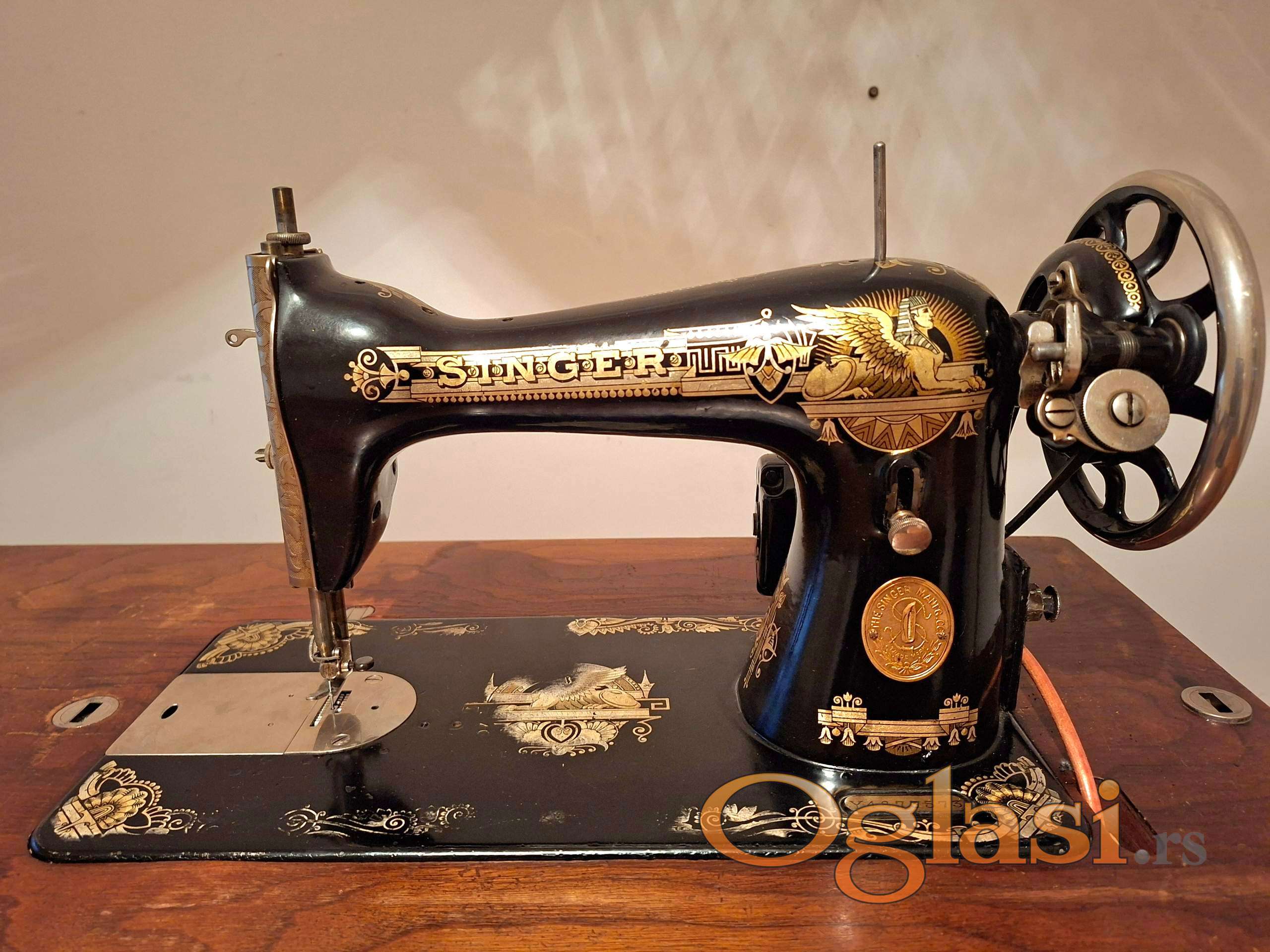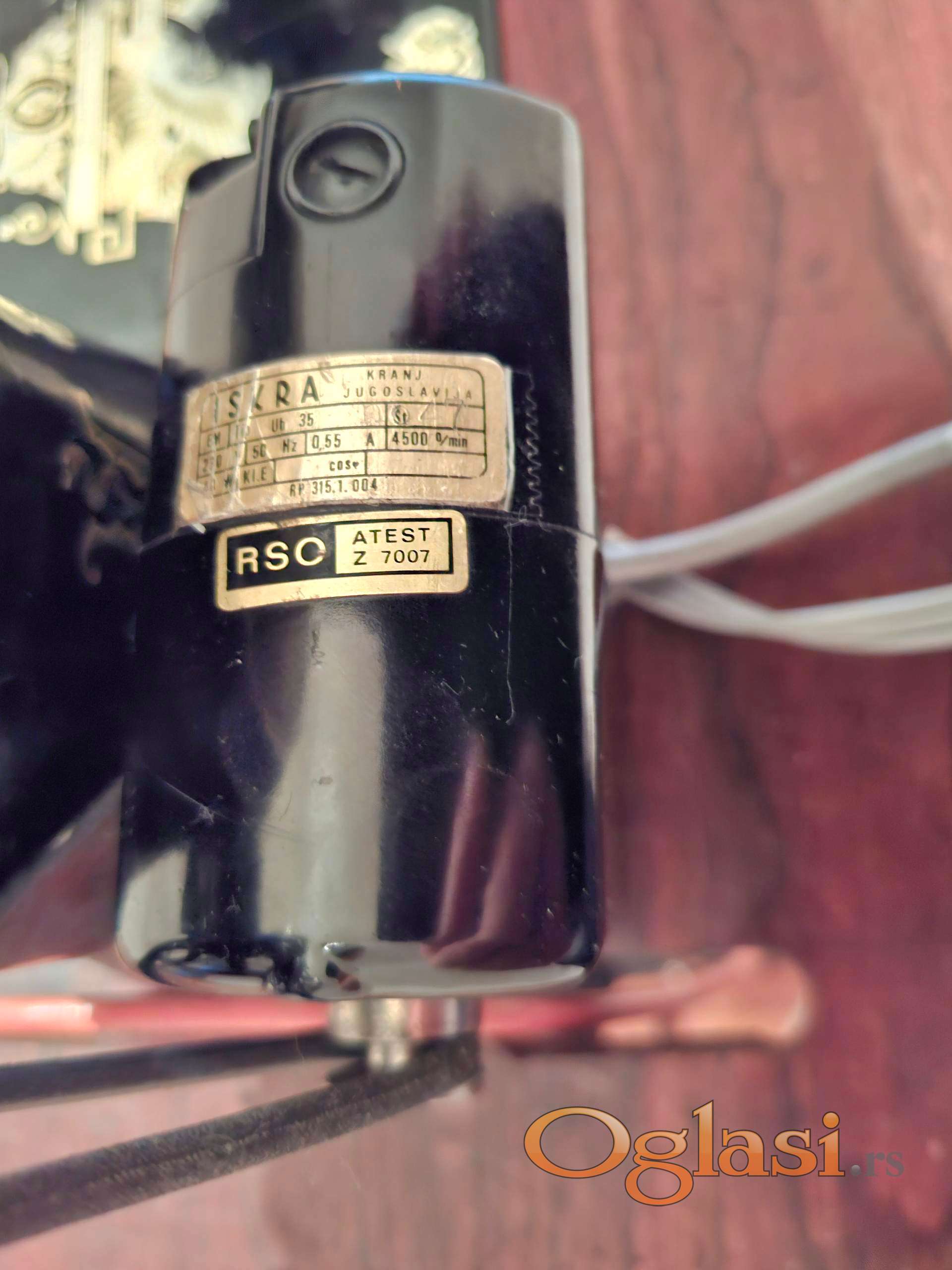 Na šivaćoj mašini je montiran motor ISKRA 0.55 A, 4.500 obr/ min. Papučuca - regulator je BAGAT proizvod. Starost mašine se procenjuje da je proizvedena između 1920 i 1930 godine ( procena je prema izgledu modela mašine i serijskog broja koji je utisnut na mašini).