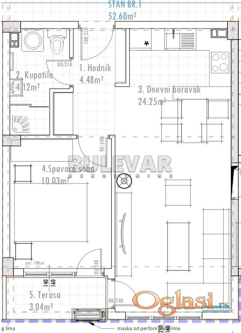 Na prodaju dvoiposoban stan u izgradnji, pozicioniran u modernom stambenom objektu PR+IV na veoma atraktivnoj lokaciji.Ovaj izuzetan stambeno-poslovni kompleks nudi širok spektar stanova različitih struktura i površina od 29m2 - 80m2, pružajući kvalitetan sadržaj za sve generacije. Posvećenost vrhunskom kvalitetu gradnje je neupitna, a to garantuje upotreba prvoklasnih materijala koje je investitor pažljivo odabrao, kao i najekonomičniji sistem grejanja i hladjenja putem toplotne pumpe.Svaki stan je opremljen kalorimetrima i potrebna energija će se obračunavati po potrošnji. Površina stana je 53m2 i sastoji se od ulaznog hodnika, dnevnog boravka sa kuhinjom i trpezarijom, spavaće sobe i kupatila. Stanovi su orijentisani tako da imaju adekvatnu funkcionalnost i raspored u odnosu na kvadraturu. Garažna ili parking mesta se posebno kupuju. Kupci prve nekretnine imaju pravo na povraćaj PDV-a u iznosu od 10%. Rok završetka je sredina 2027 god. KUPOVINA BEZ PROVIZIJE ZA KUPCA. Za sve detaljnije informacije i razgledanje, možete nas kontaktirati na brojeve telefona 060 05 44 384 i 060 05 44 385. Bulevar nekretnine 016 Leskovac,broj u registru posrednika 1471.