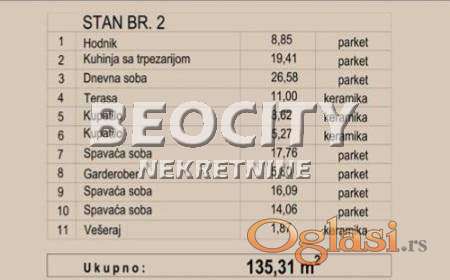Agencijski ID: 130711, I/II. LUX NOVI-NOVO NASELJE* 135,31 m2, FANTASTIČAN 4,0-soban. SA PDV. Dnevna soba 26,58 m2, kuhinja i trpezarija, odvojene 19,41 m2 i 3 velike spavaće sobe 17,78 m2 16,09 m2 i 14,06 m2 u zgradi PR+1+Pk. Grejanje GAS, po potrošnji. Izuzetno ekonomično. Vrhunska gradnja. Zgrada nema lift. Stan je na PRVOM spratu. Blizina skola, fakulteta. Odlična autobuska linija sa centrom grada i fakultetima, TC Promenada, mnostva marketa, restorana, kafea. Odličan stan za življenje ili izdavanje. Južna strana. Povrat PDV. Moguc kredit. Ako se gotovinski plaća 90% cene stana, m2 je za 100e niži, (2100e). Cena je sa uracunatim PDV. Useljenje jun 2026.Odluka za nov stan, uvek je dobra odluka. Više informacija na: www.beocitynekretnine.rs Agencijska provizija 3%. Telefoni: 021/399-0210 • 060/399-0210. Kontakt van radnog vremena: kancelarija@beocitynekretnine.rs