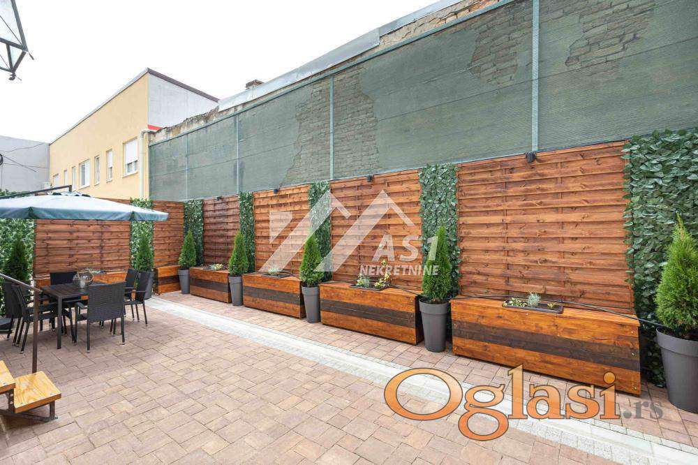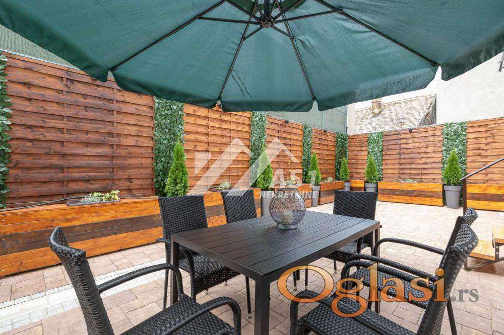 Stan poseduje uređenu zelenu baštu veličine 60m2 sa nameštajem (sto, 6 stolica, suncobran, automatski zalivni sistem, ambijentalna rasveta).
