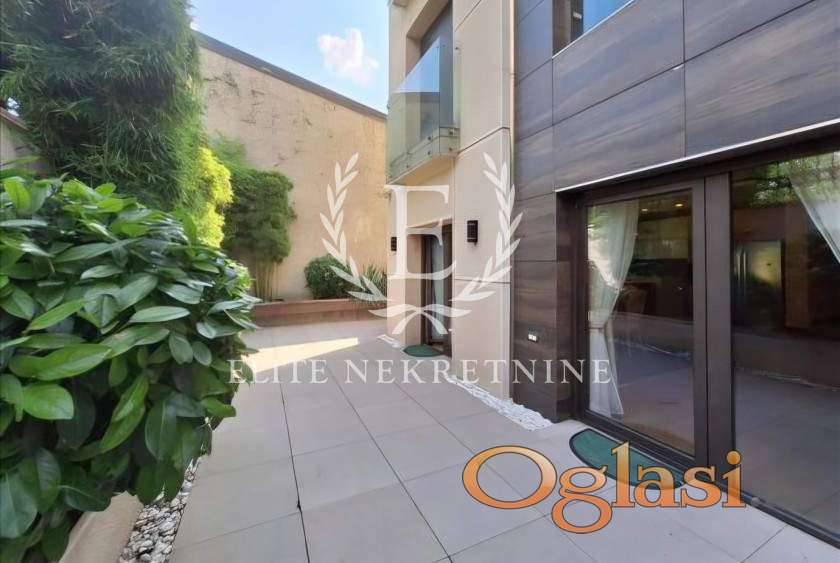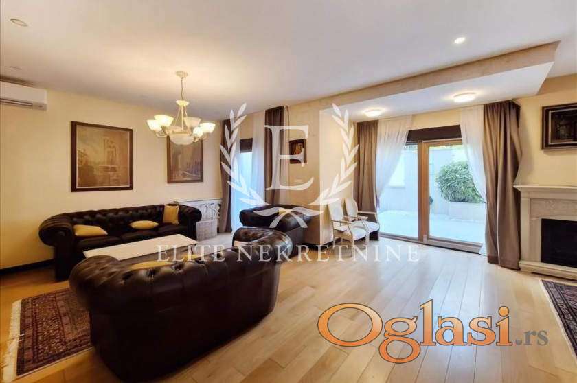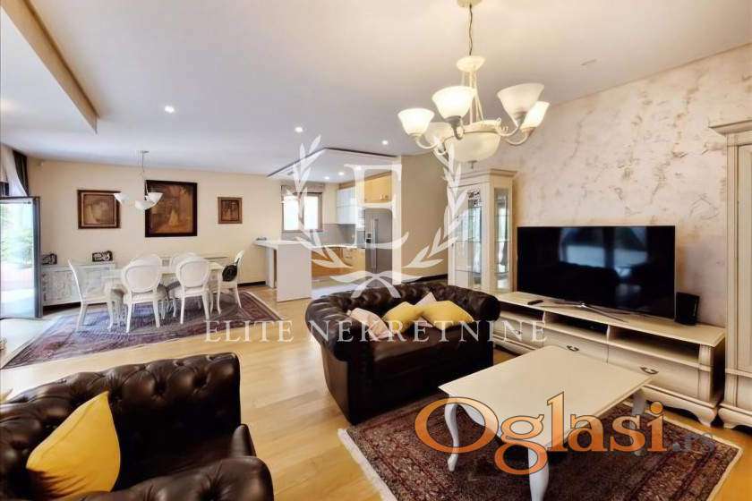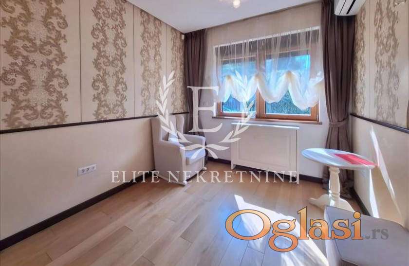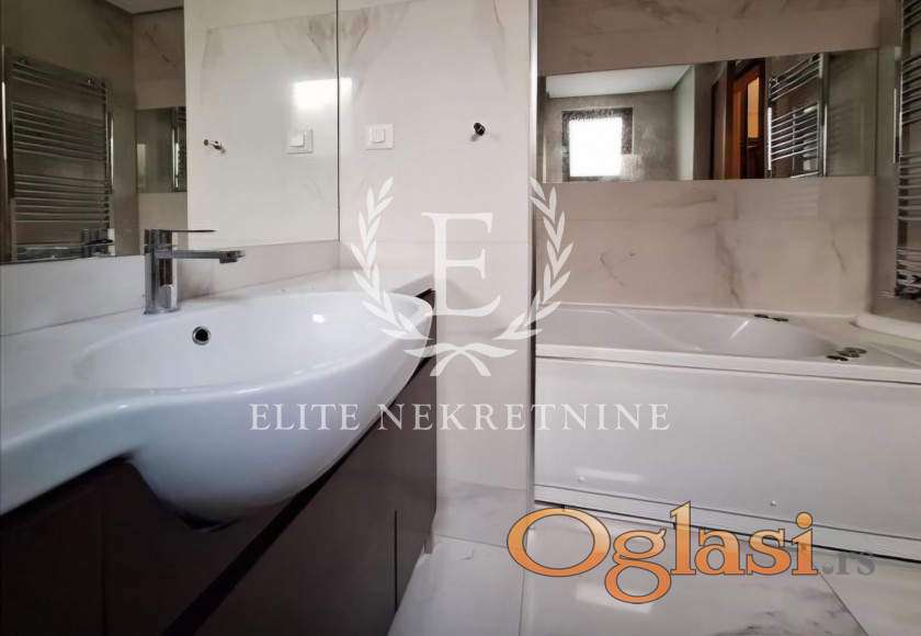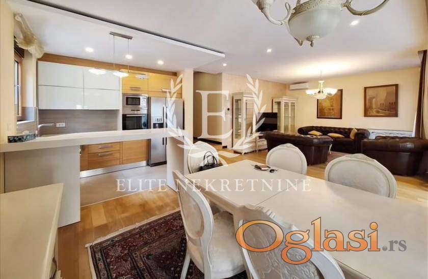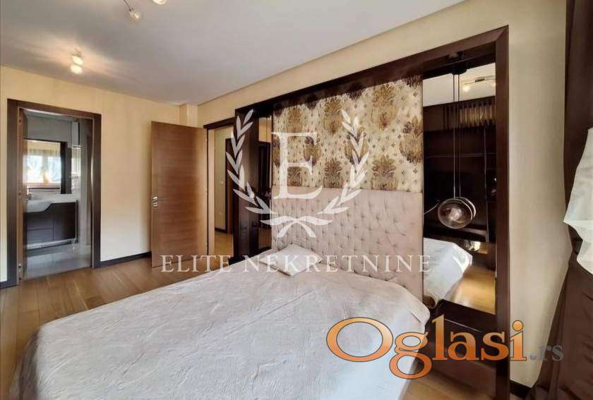 Enterijer je uređen u savremenom, elegantnom stilu sa pažljivo biranim detaljima i kvalitetnim nameštajem, pružajući visok nivo komfora i luksuza. Stan je idealan za porodičan život ili poslovne ljude koji traže mir, kvalitet i prestižnu lokaciju.
